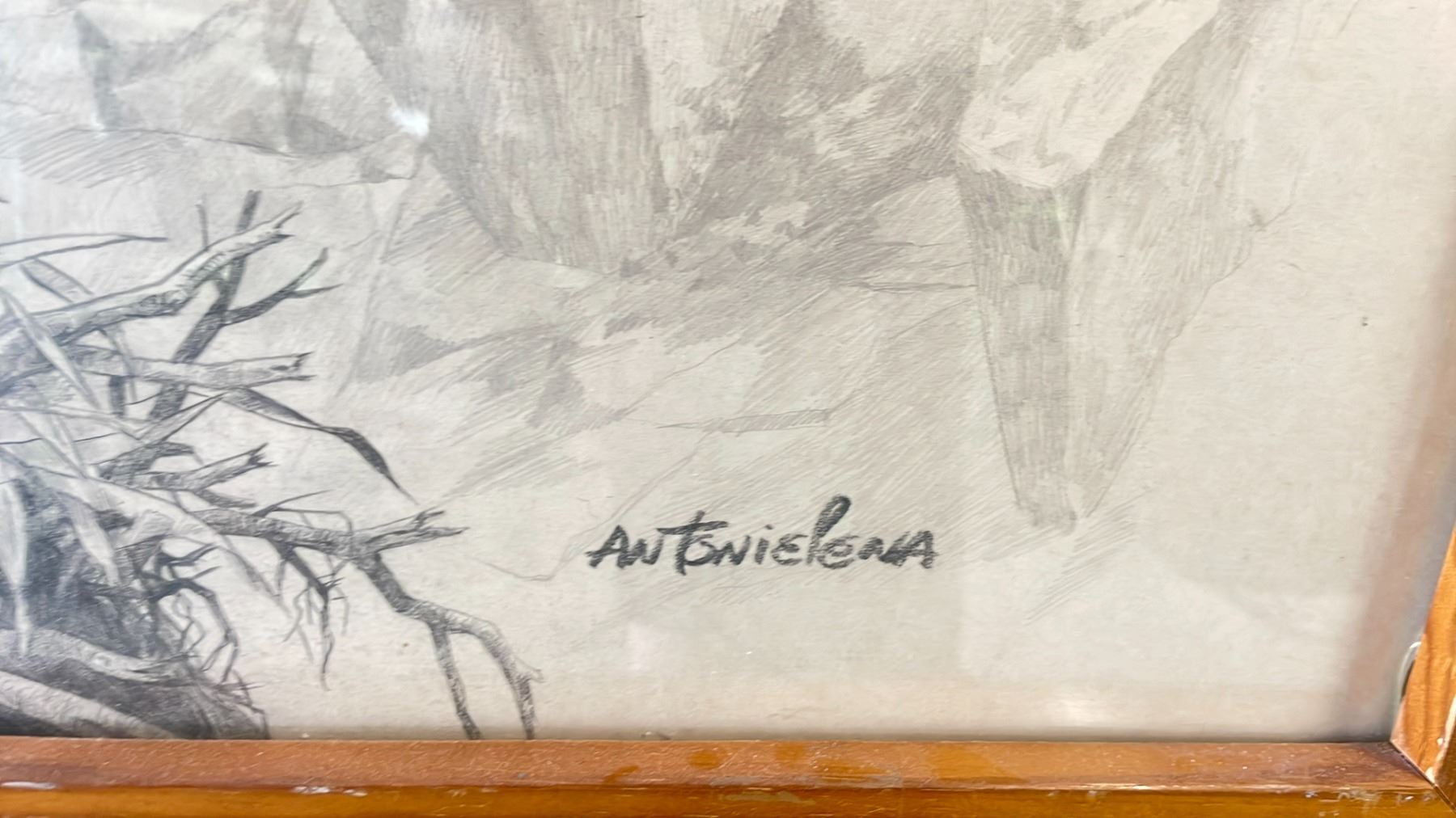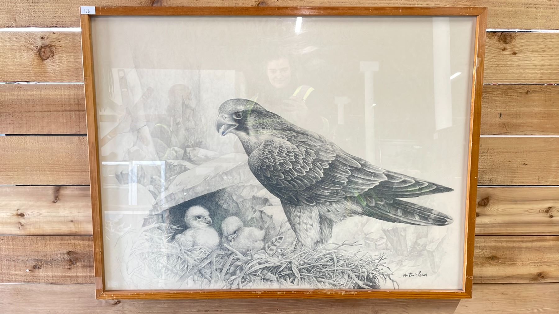 FRAMED PENCIL ON PAPER OF PEREGRINE FALCON 41" X 31"