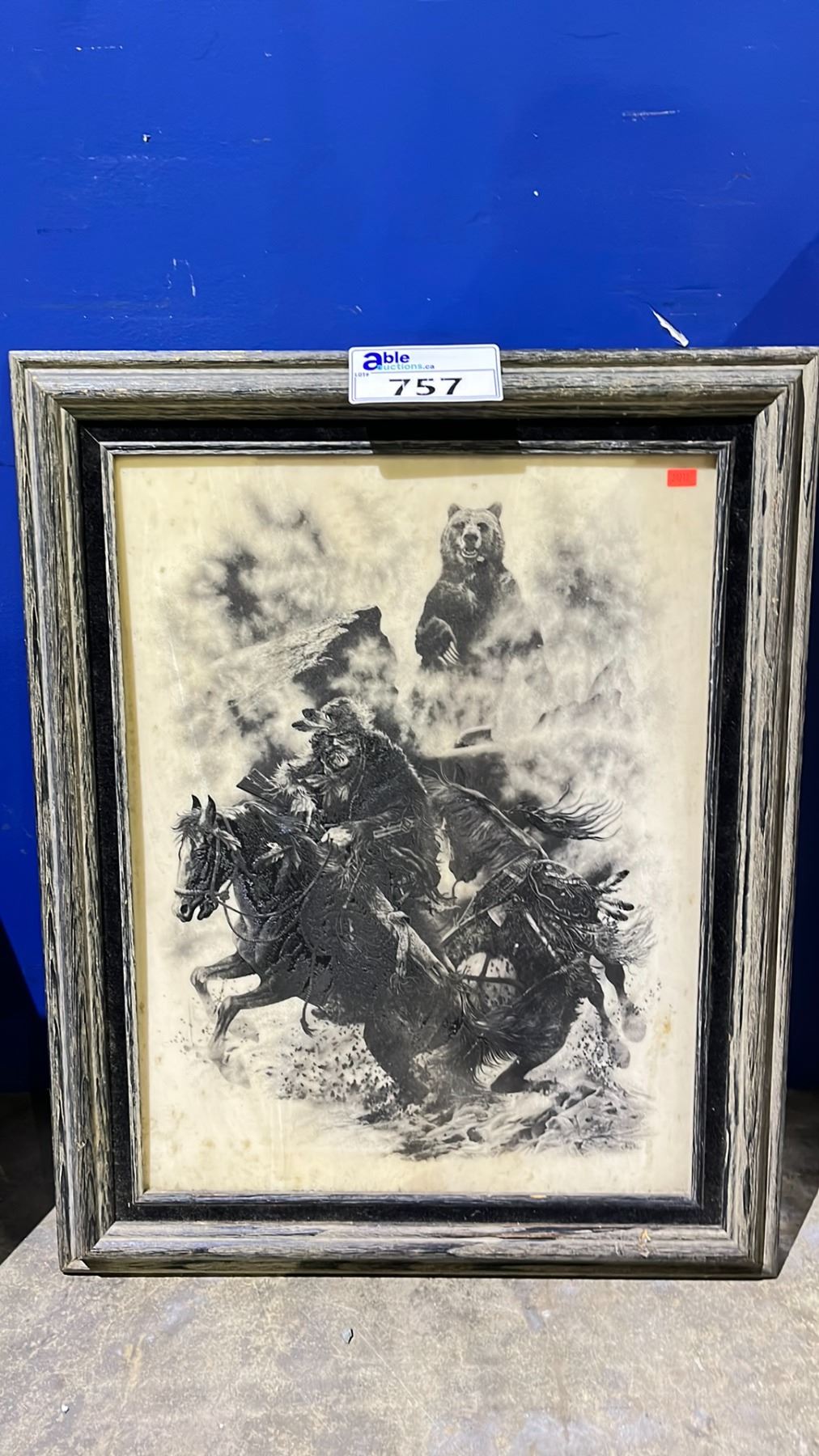 FRAMED PRINT BY BILL O'NEILL TITLED "TRAPPER GRIZZLY AWAKENED GIANT"