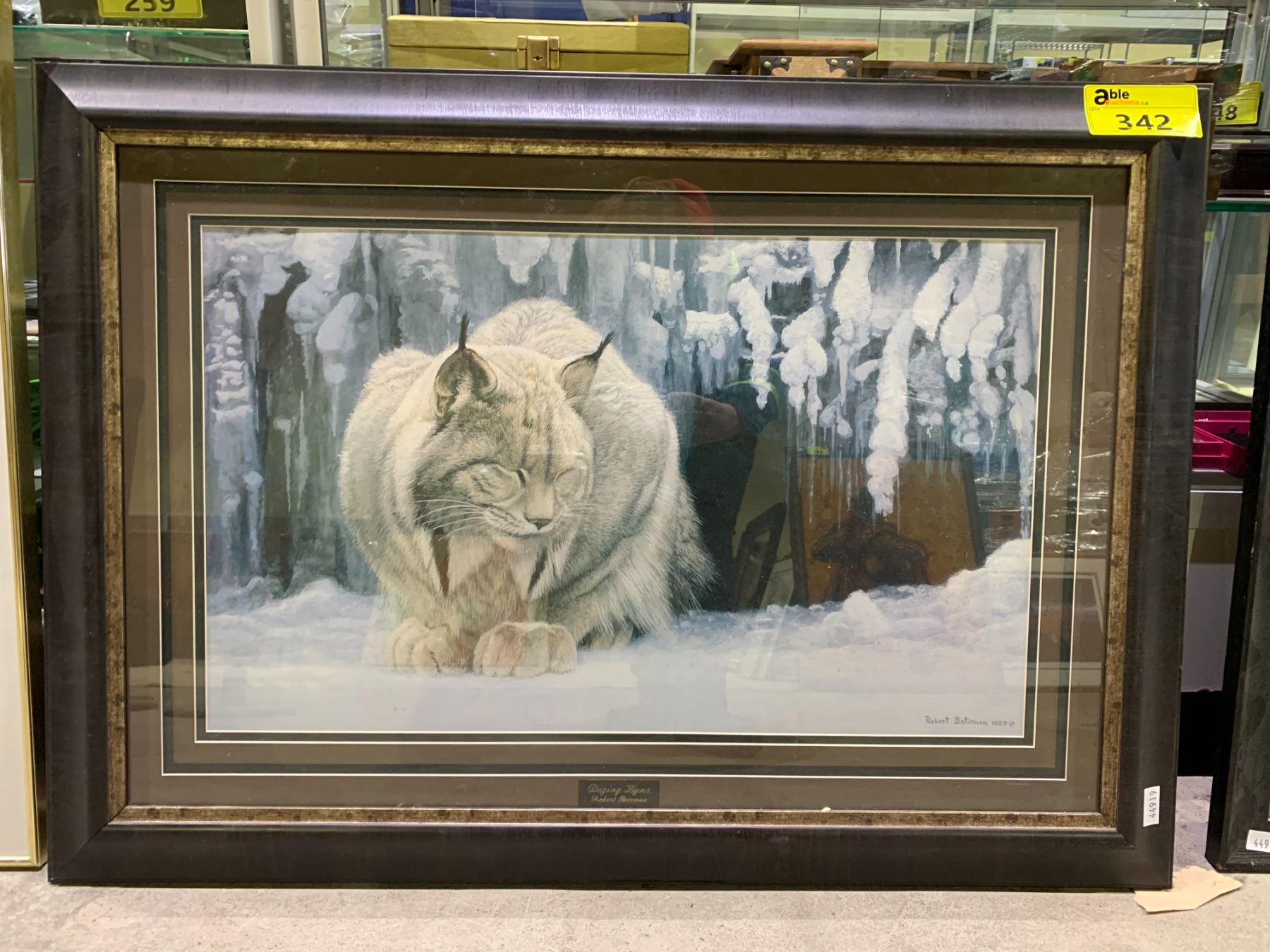 FRAMED PRINT BY ROBERT BATEMAN TITLED "DOZING LYNX" 41" X 30"