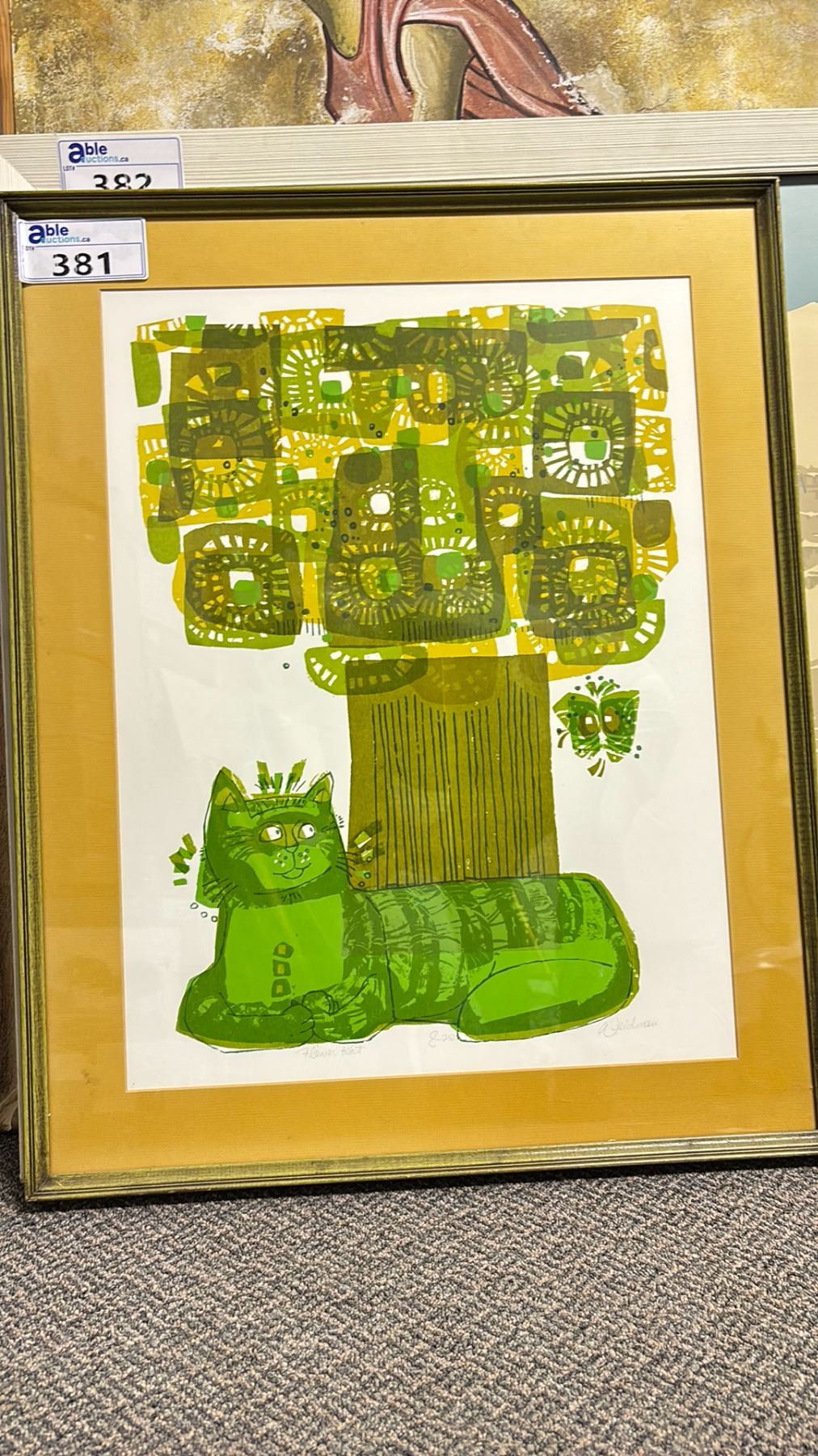 FRAMED PRINT "FLOWER CAT" PENCIL SIGNED "WEIDMAN"