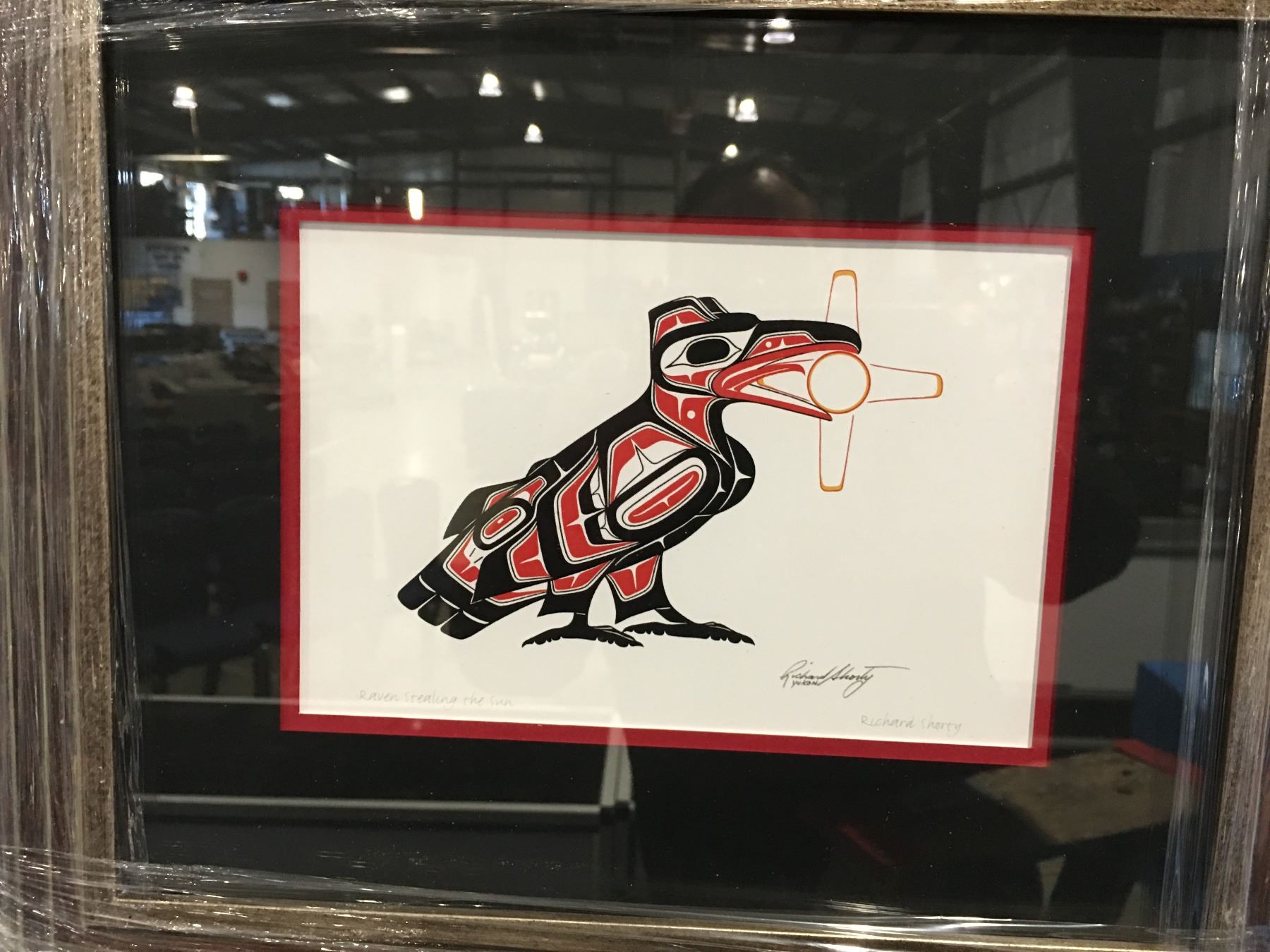 FRAMED RICHARD SHORTY PRINT TITLED "RAVEN STEALING THE SUN" 13" X 15"