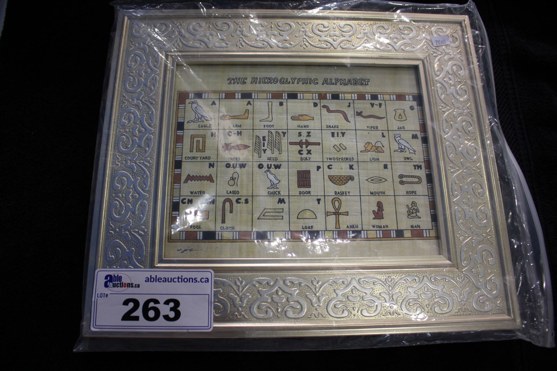 FRAMED "THE HIEROGLYPHIC ALPHABET" ON "ADEL GHABOUR PAPYRUS"