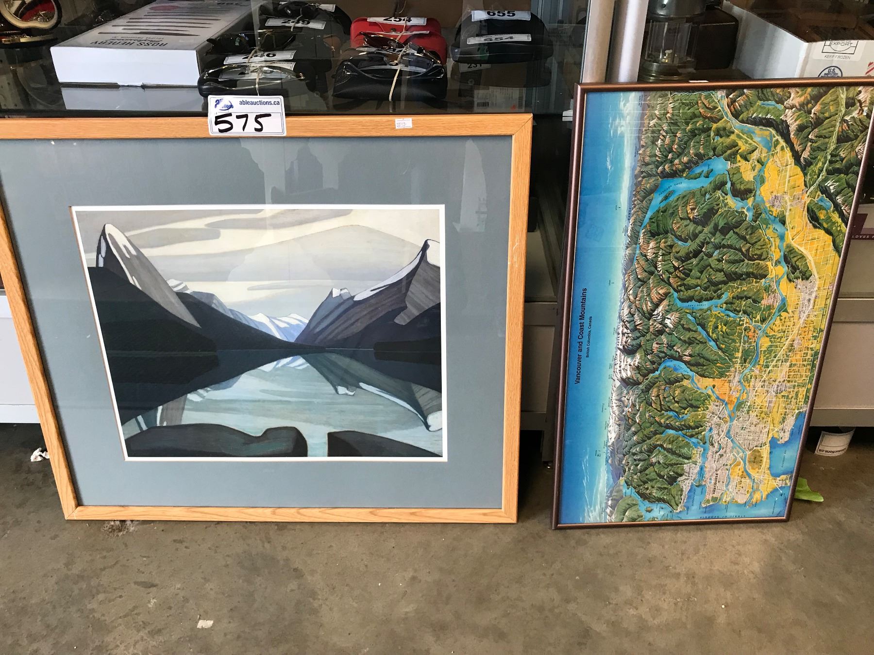 FRAMED VANCOUVER & COAST MOUNTAINS KETTLER MAP/FRAMED MALIGNE LAKE JASPER PARK BY LAWREN HARRIS (B1)