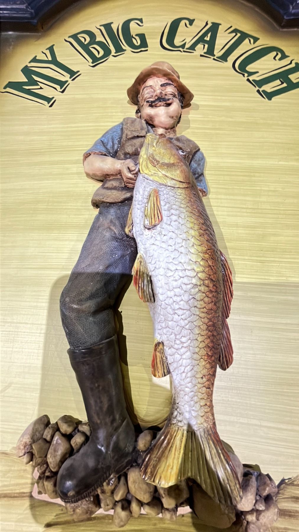 FRAMED WOODEN "MY BIG CATCH, FISH TALES TOLD HERE" SIGN APPROX 26X 17"