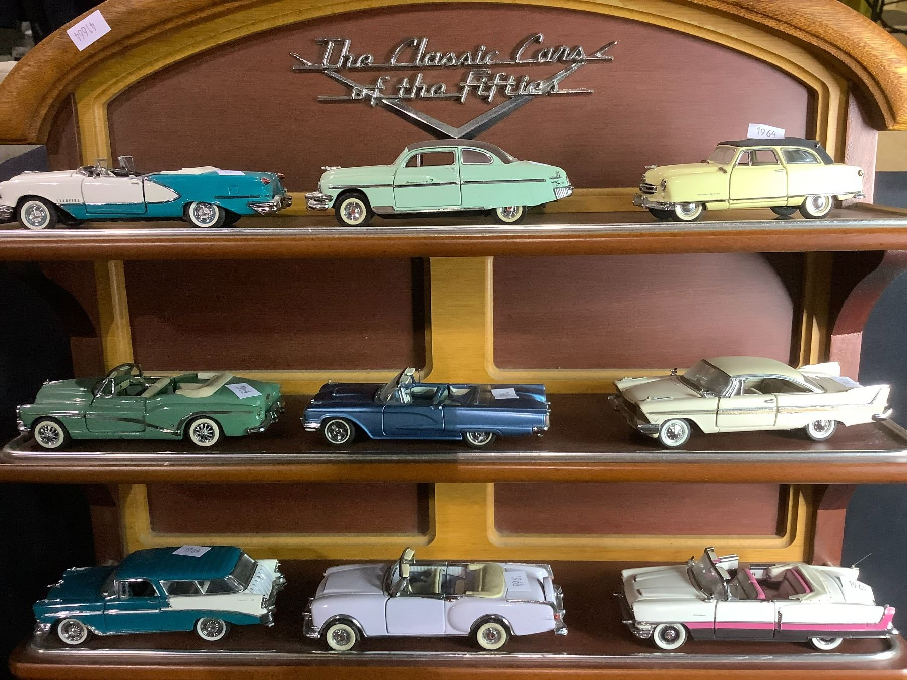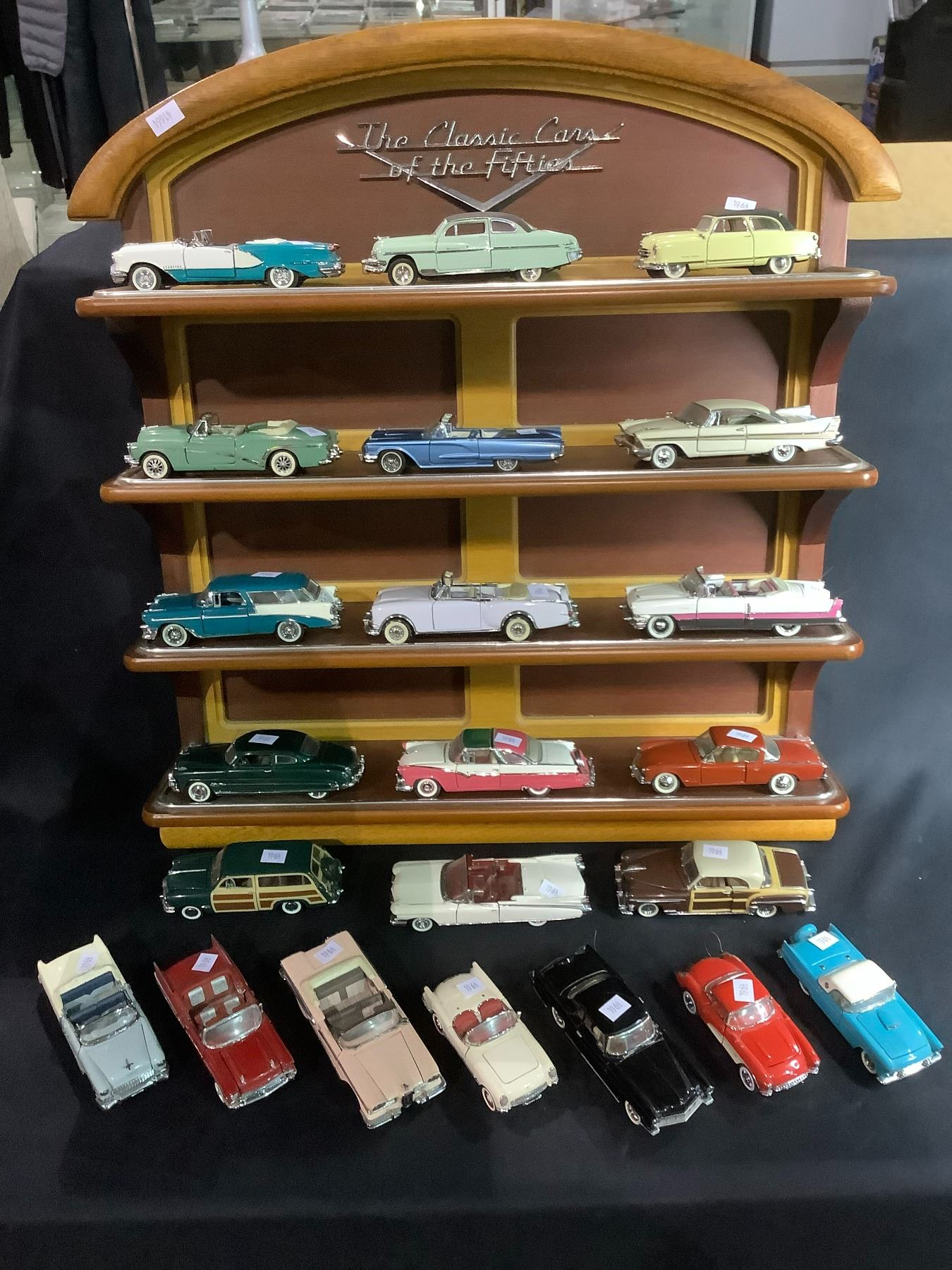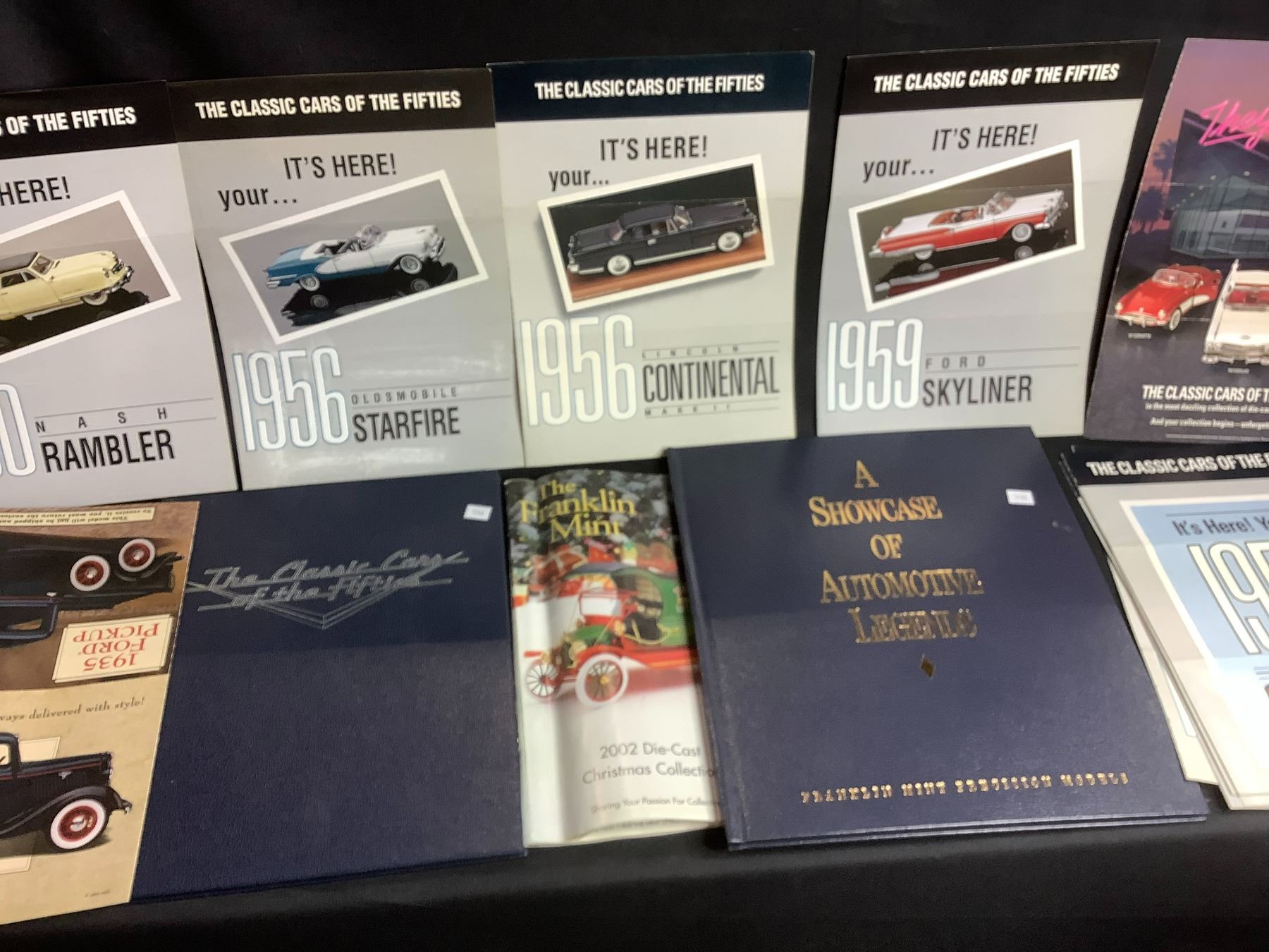 FRANKIN MINT CAR COLLECTION "THE CLASSIC CARS OF THE FIFTIES" 22 CARS IN TOTAL INCLUDES WALLMOUNT INCLUDES BOOKS, BROCHURES, AND MORE
