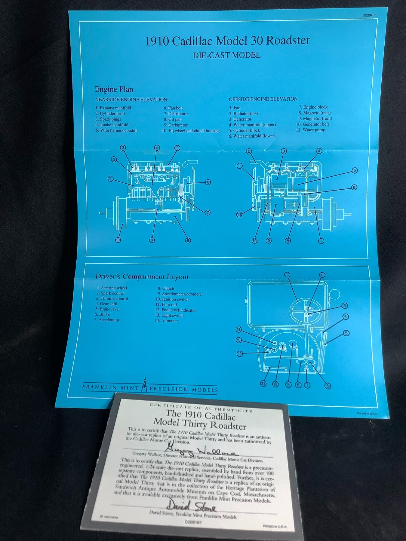 FRANKLIN MINT PRECISION MODELS 1910NCADILLAC MODEL THIRTY ROADSTER 1:24 SCALE WITH COA