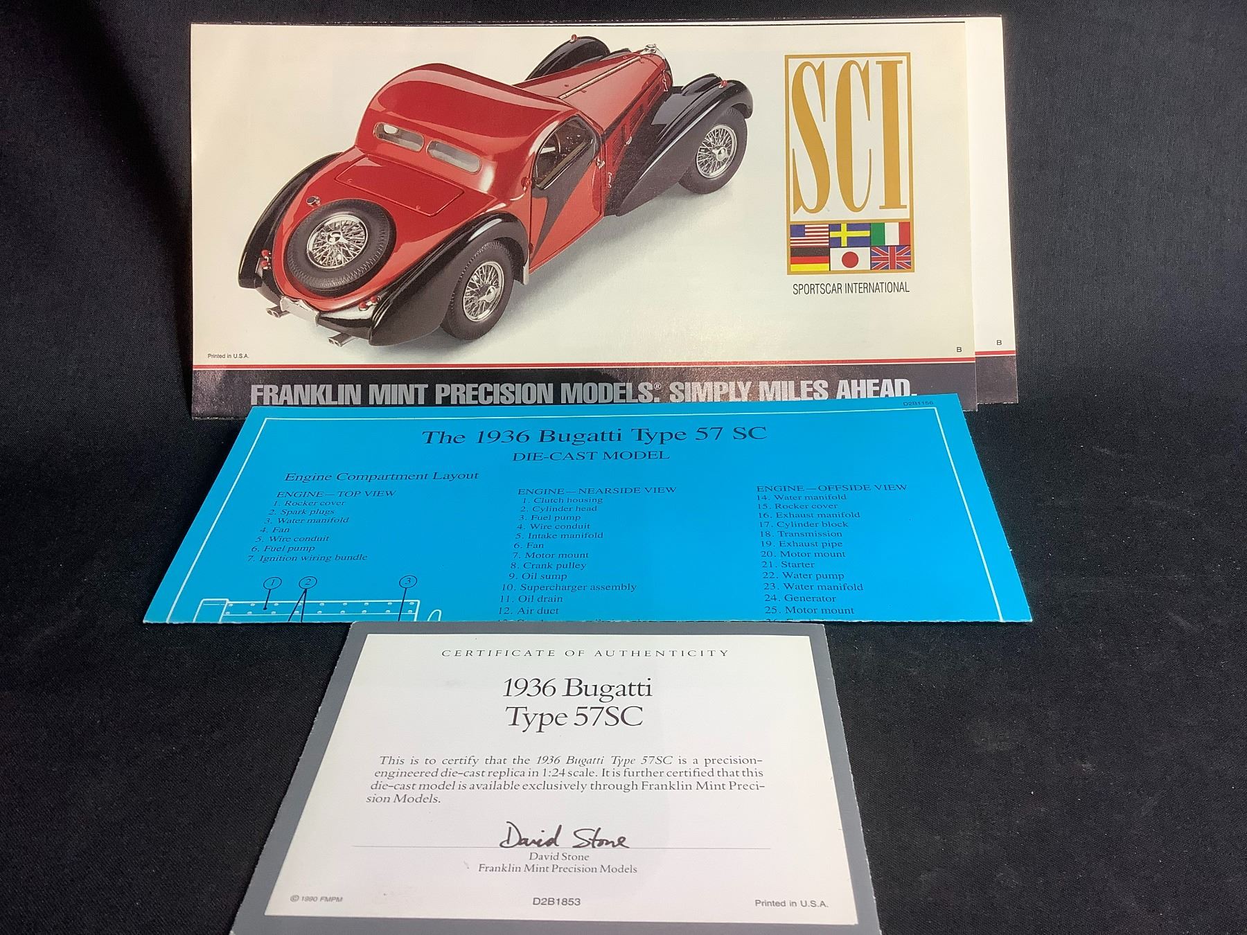 FRANKLIN MINT PRECISION MODELS 1936 BUGATTI TYPE 57SC 1:24 SCALE WITH COA