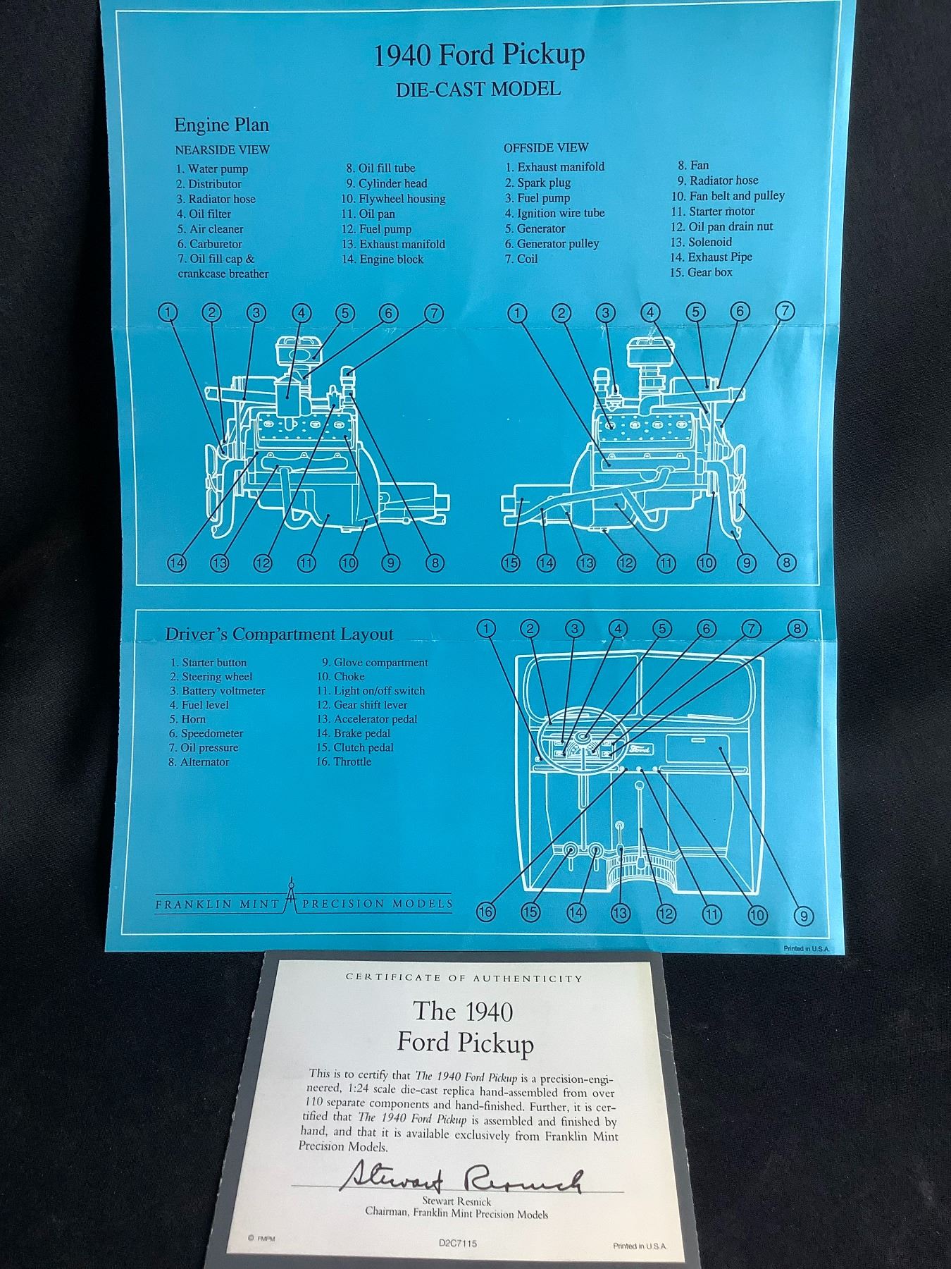 FRANKLIN MINT PRECISION MODELS 1940 FORD PICKUP 1:24 SCALE WITH COA
