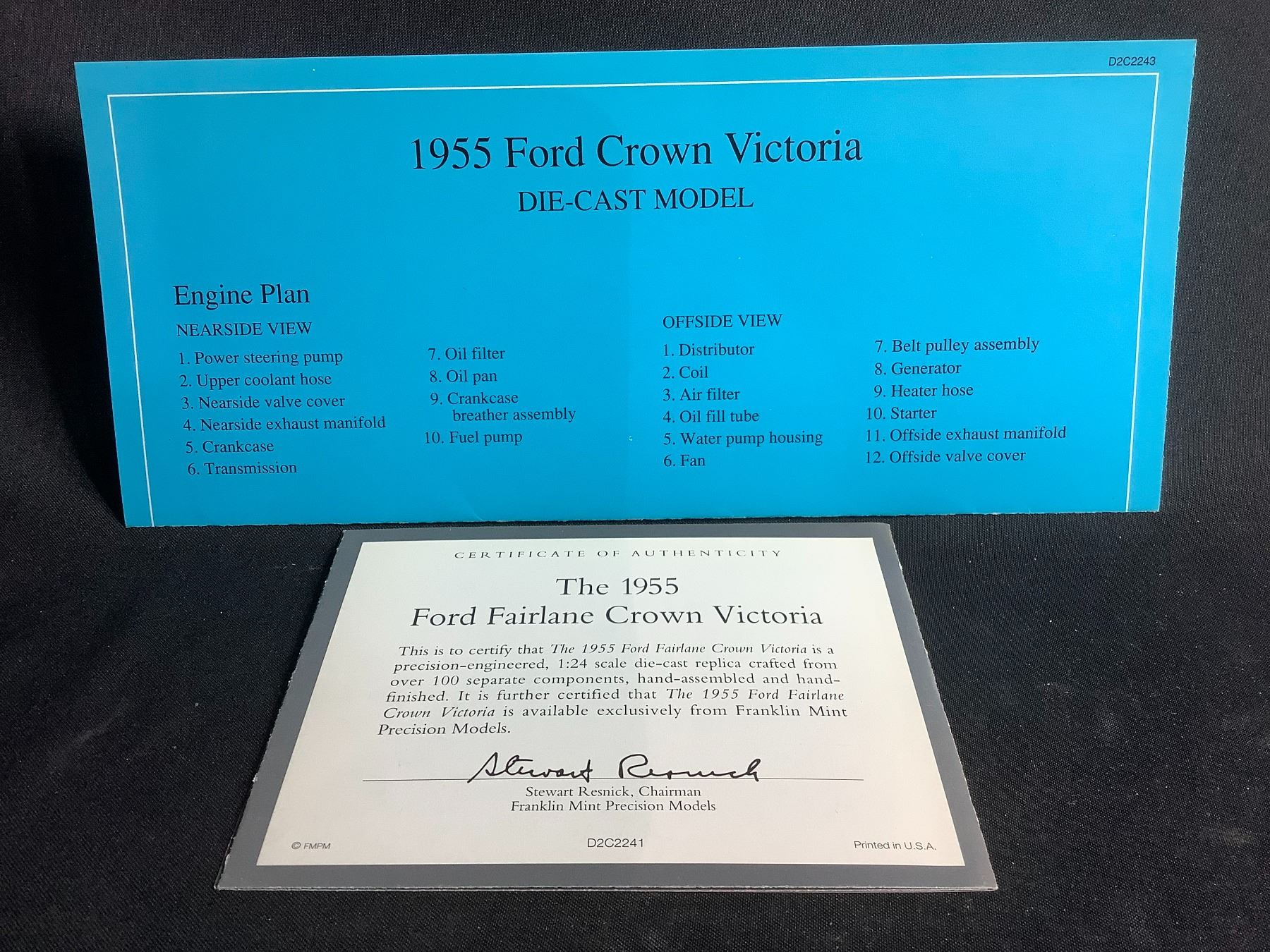 FRANKLIN MINT PRECISION MODELS THE 1955 FORD FAIRLANE CROWN VICTORIA 1:24 SCALE WITH COA