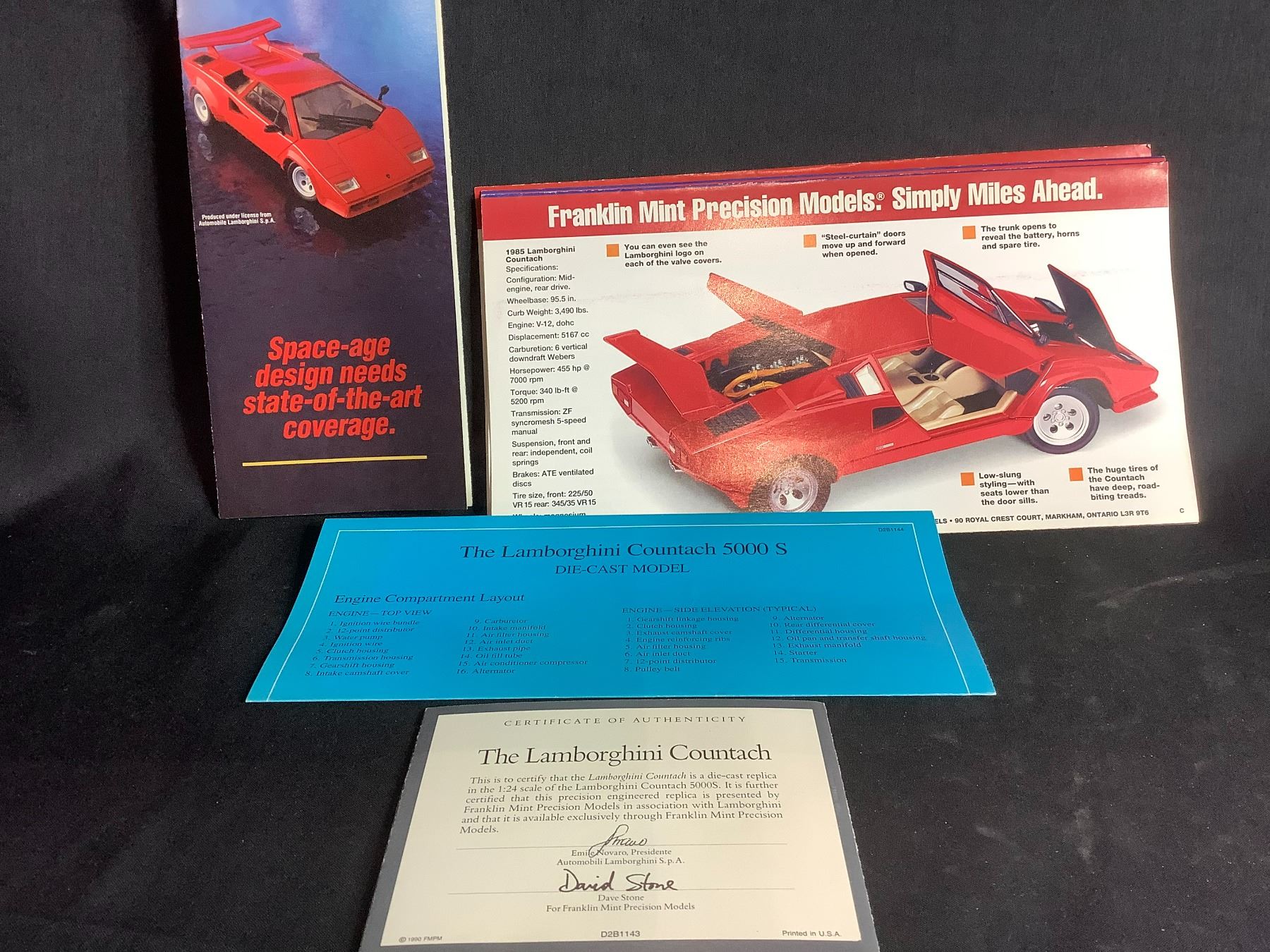 FRANKLIN MINT PRECISION MODELS THE LAMBORGHINI COUNTACH 5000 S1:24 SCALE WITH COA