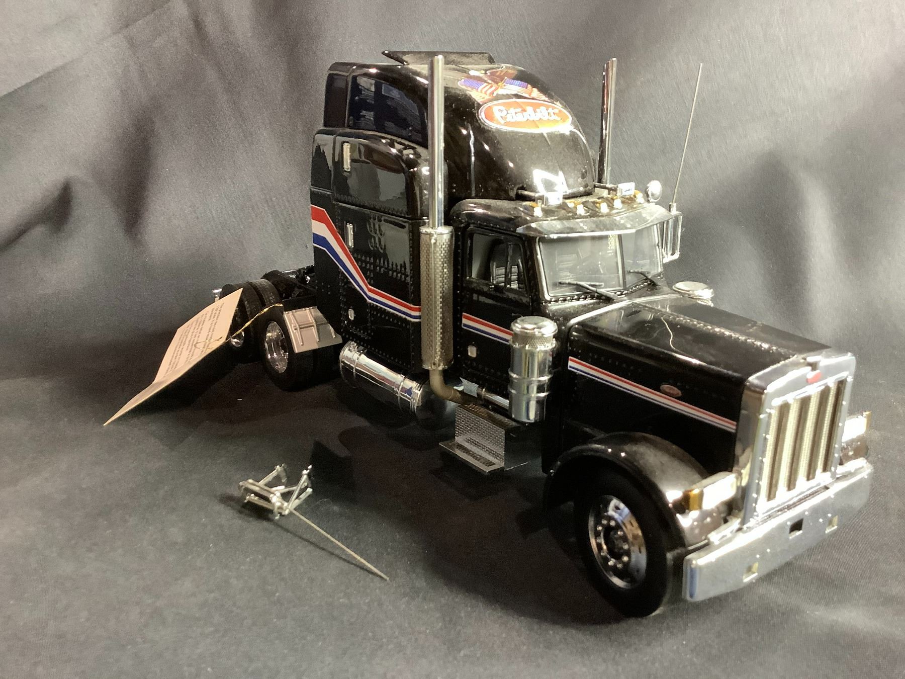FRANKLIN MINT PRECISION MODELS THE PETERBILT 379 1:32 SCALE WITH COA RIGHT SIDE MIRROR NEEDS TO BE RE-ATTACHED, PART INSIDE TRUCK