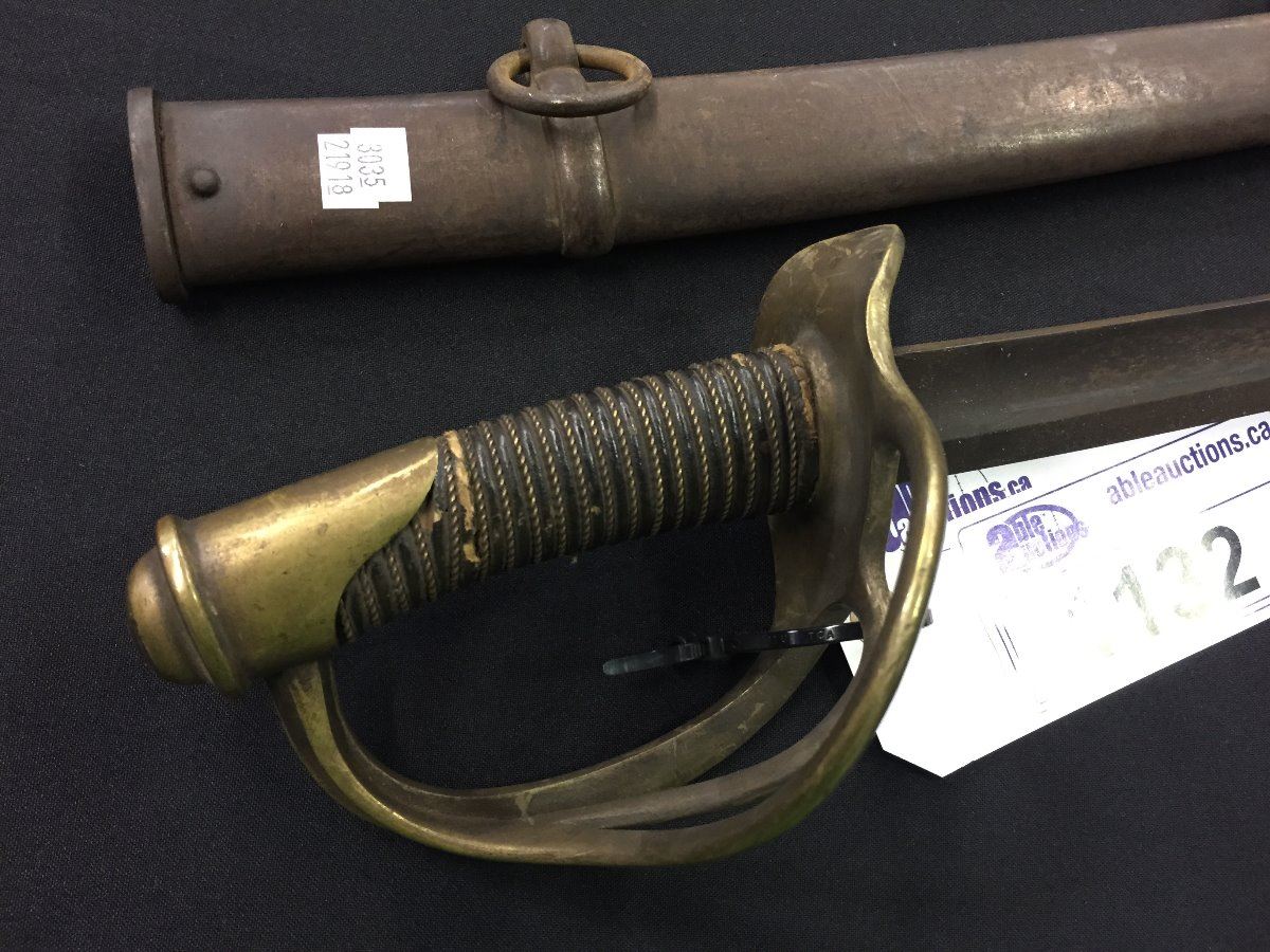 FRENCH 1882 HEAVY CALVARY SWORD, HEAVY CALVARY TROOPERS PATTERN, 35" BLADE WITH SCABBARD