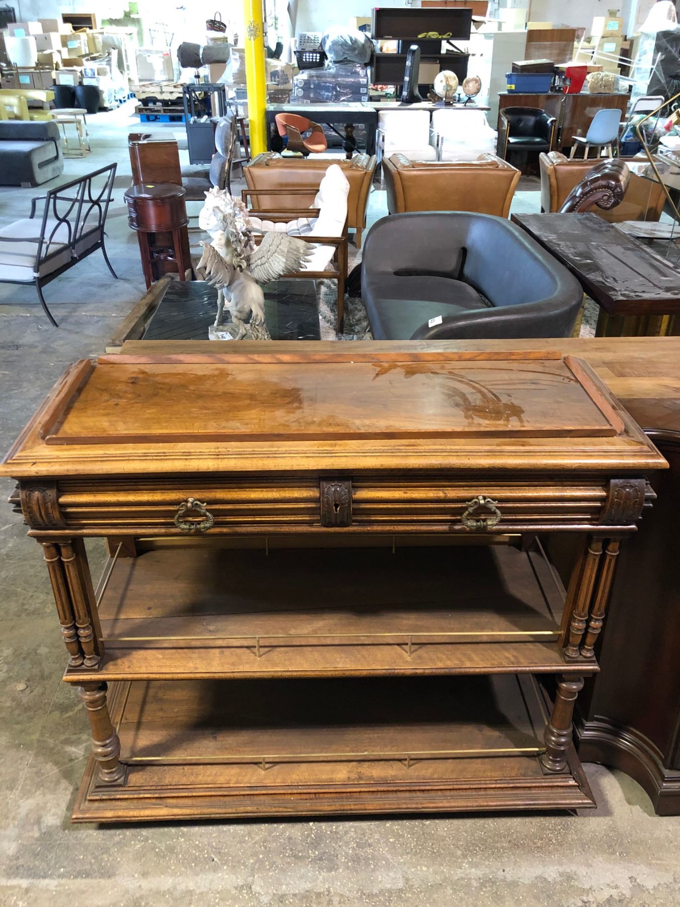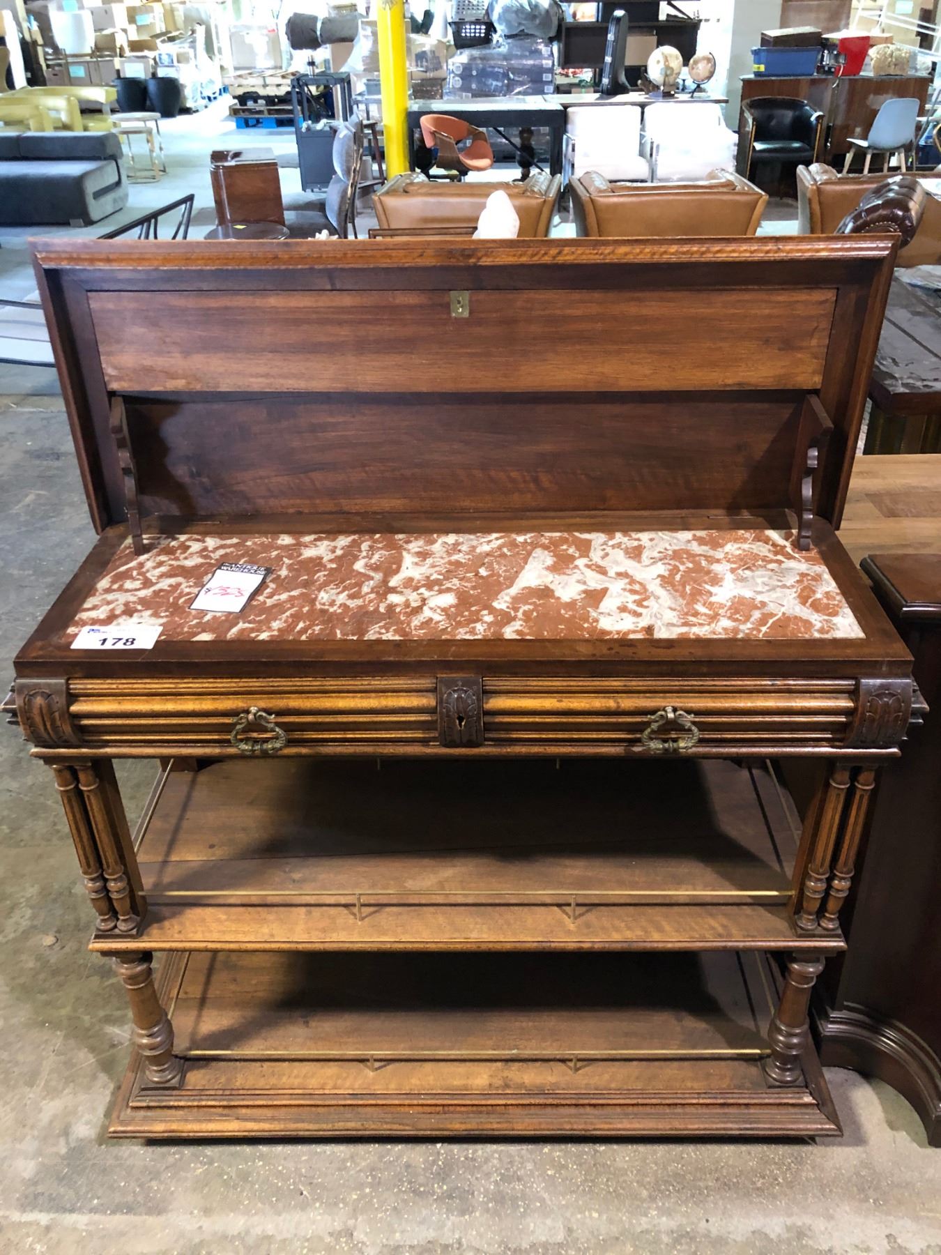 FRENCH 3 TIER SERVING CABINET WITH MARBLE TOP CIRCA 1880 WITH FLIP TOP