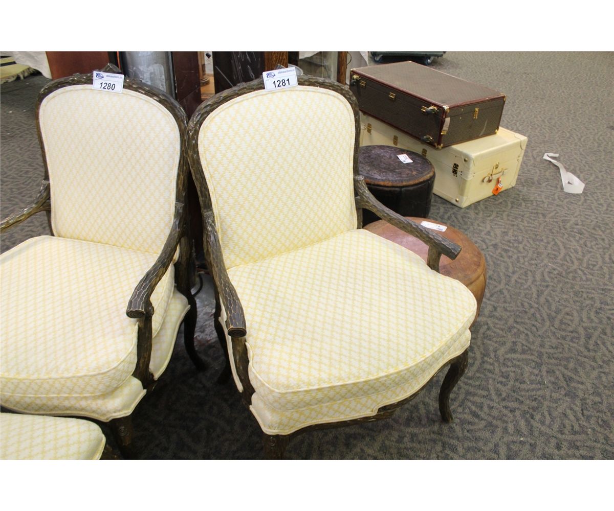 FRENCH FAUXBOIS LOUNGE CHAIR FROM WILLIAM SWITZER WITH WOODEN ARM RESTS