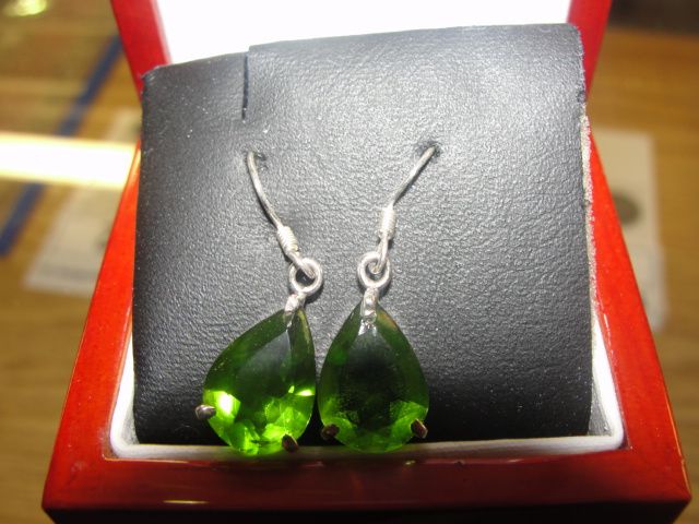 FRENCH HOOK .925 SILVER GREEN PERIDOT DROP EARRINGS. NEW