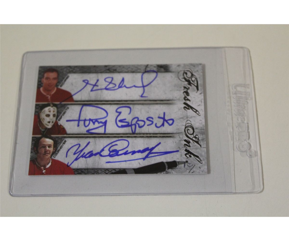 FRESH INK CARD SIGNED BY- HENRI RICHARD, TONY ESPOSITO & YVAN COUNOYER