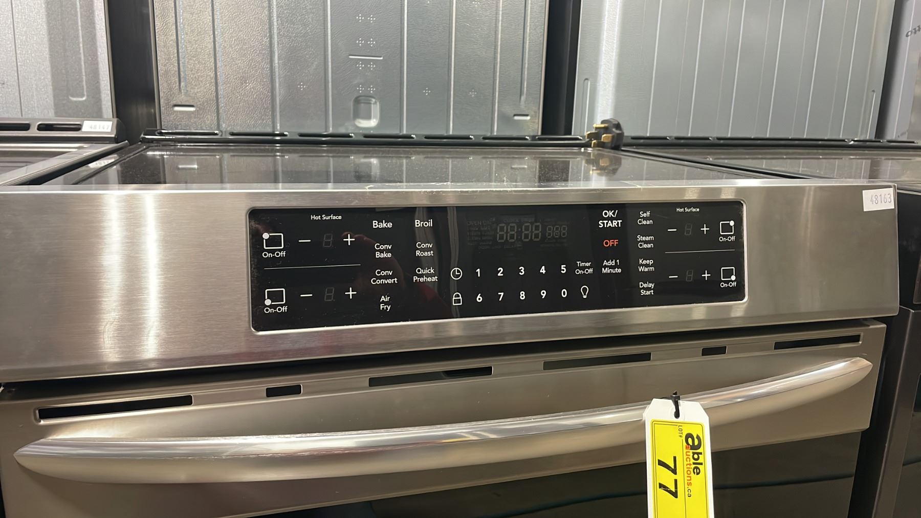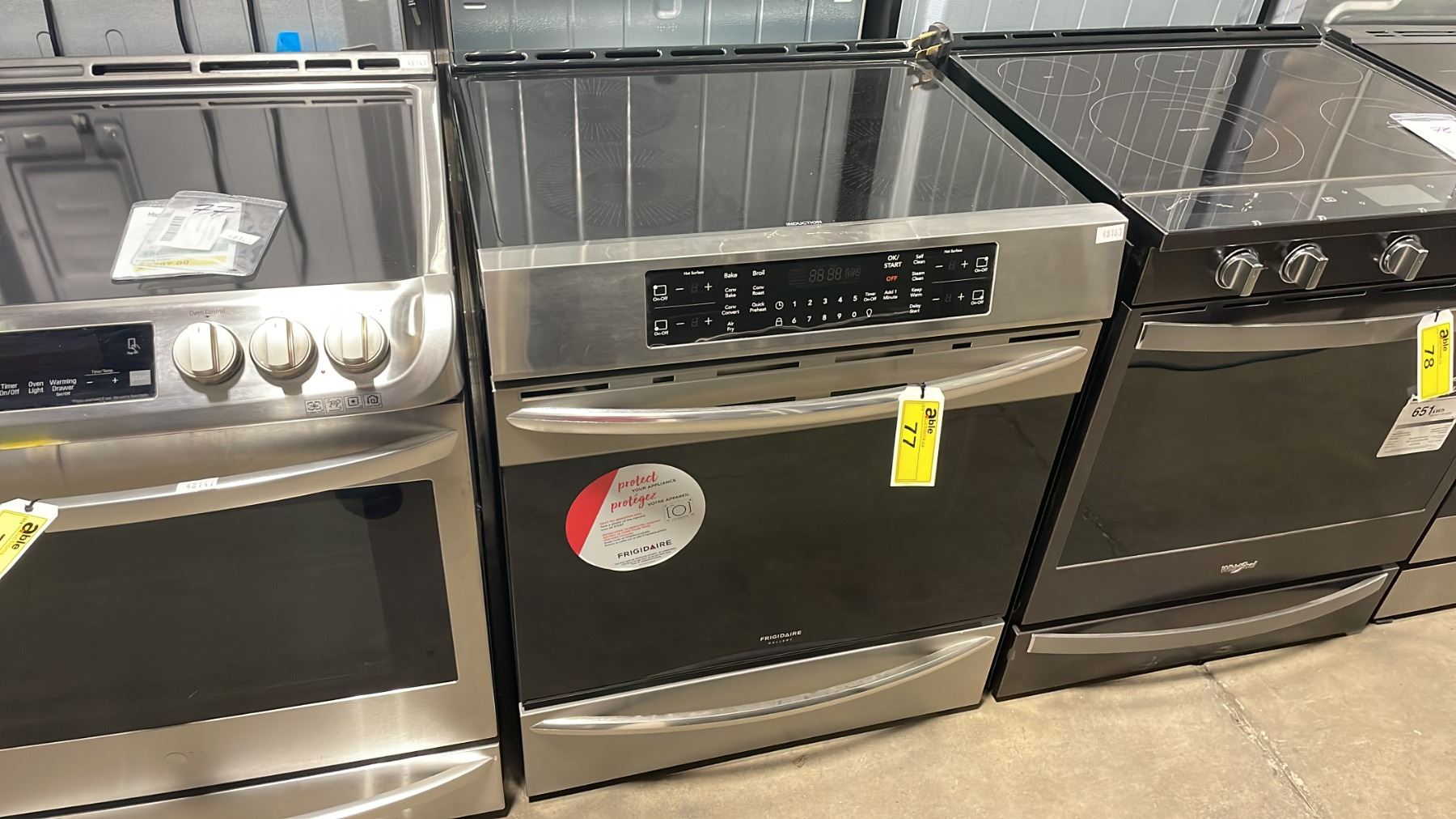 FRIGIDAIRE GALLERY MODEL CGIH3047VFB. 30" STAINLESS STEEL FRONT CONTROL INDUCTION RANGE WITH 4 BURNERS, AIR FRY, SELF CLEAN, STORAGE DRAWER SN VF13885646 RETAIL PRICE $1899.00