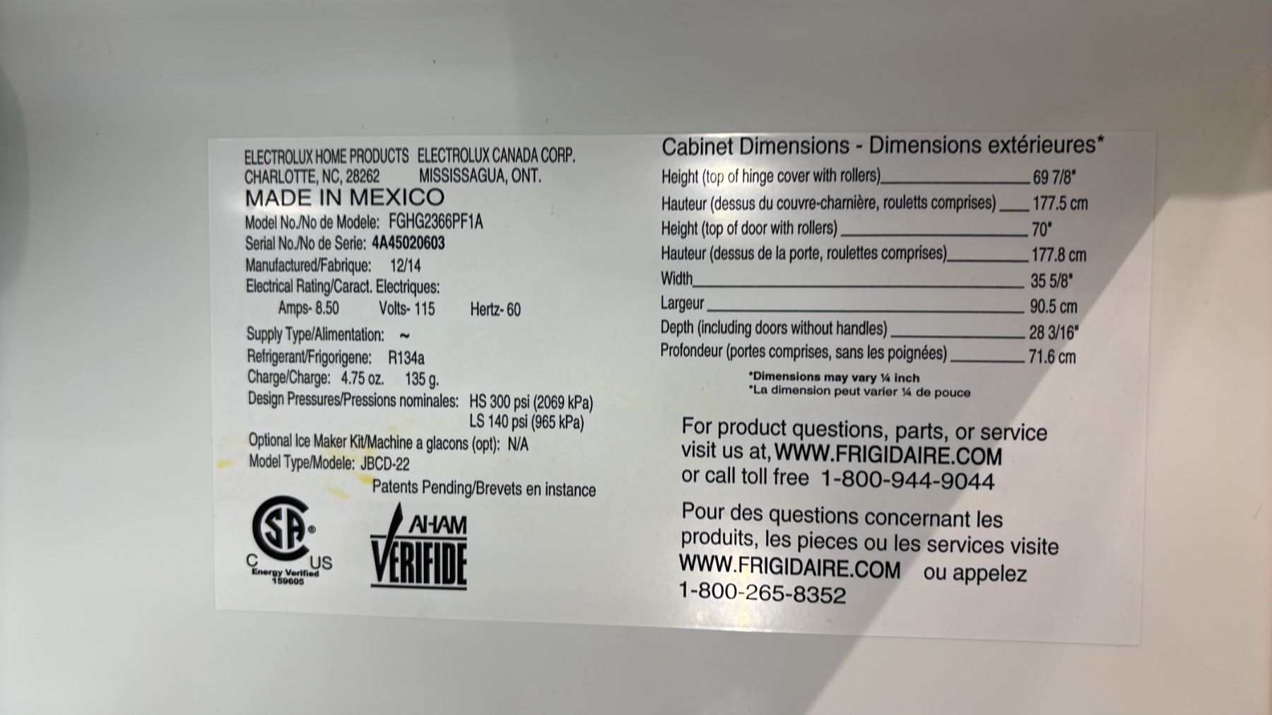 FRIGIDAIRE GALLERY STAINLESS STEEL FRENCH DOOR FRIDGE WITH ROLLOUT FREEZER 36"W