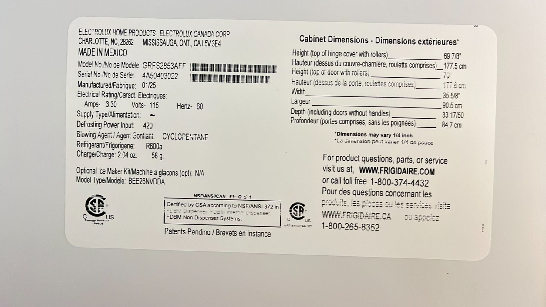 FRIGIDAIRE GALLERY STAINLESS STEEL FRENCH DOOR FRIDGE WITH ROLLOUT FREEZER & WATER/ICE DISPENSER 36"W
