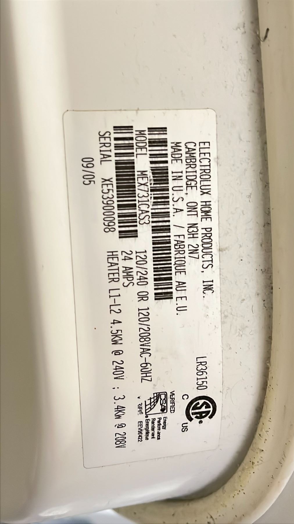 FRIGIDAIRE MEX731CAS3 STACKING WASHING MACHINE & DRYER