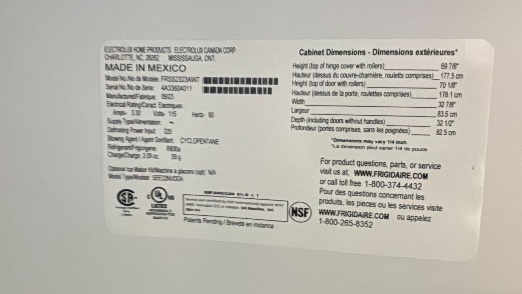 FRIGIDAIRE SIDE BY SIDE FRIDGE WITH WATER AND ICE DISPENSER *SOME SCRATCHES*