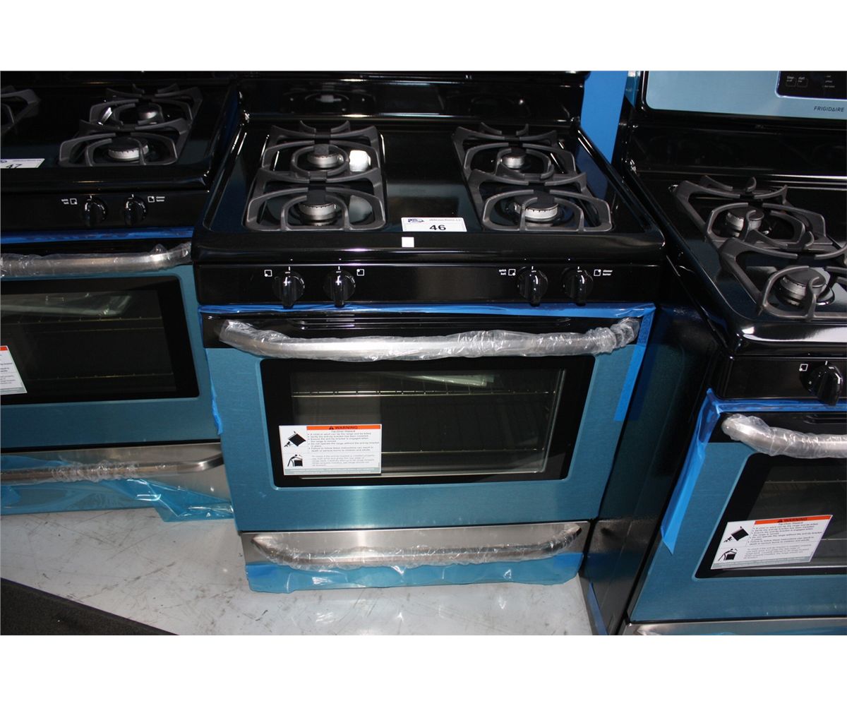 FRIGIDAIRE STAINLESS STEEL AND BLACK GAS STOVE
