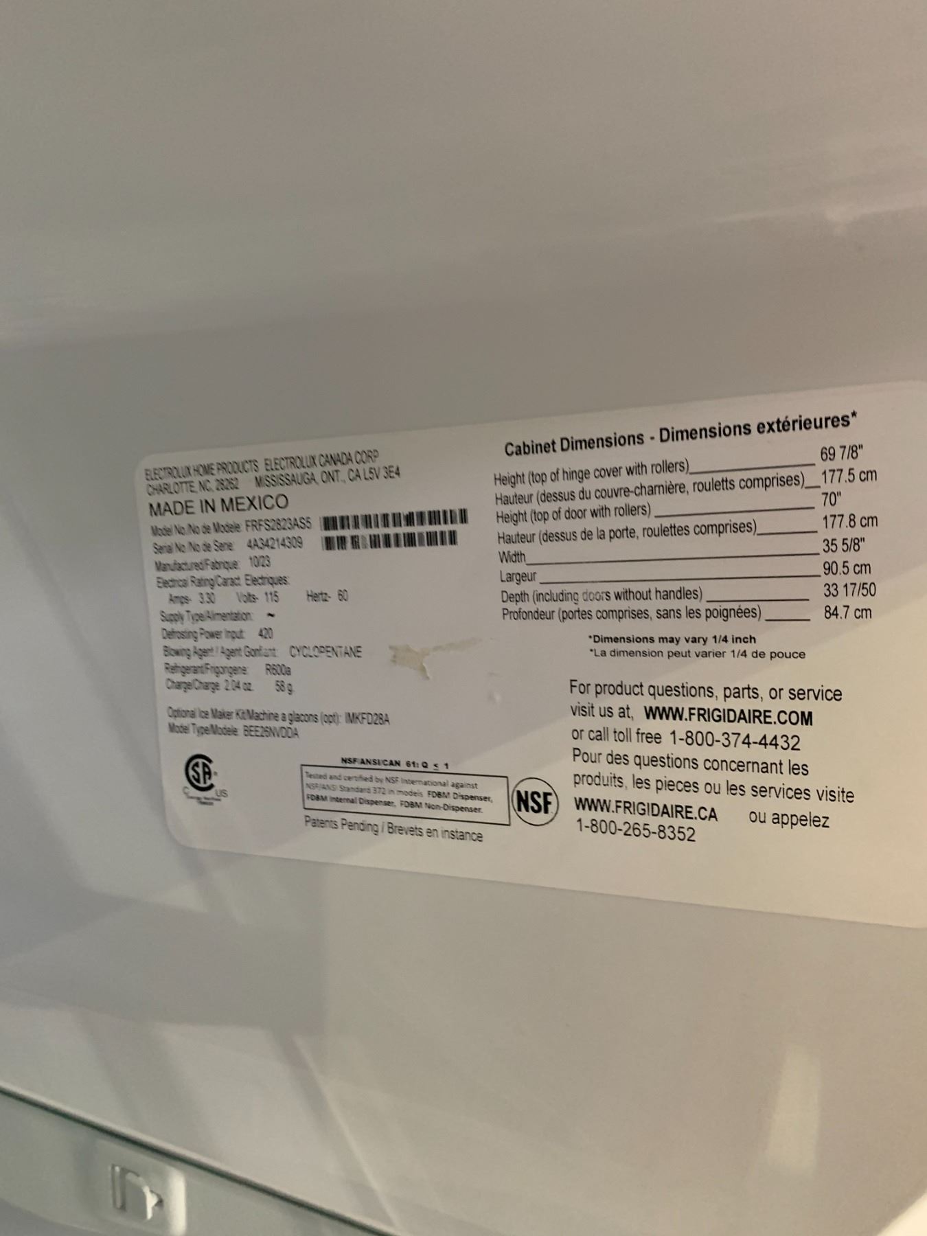 FRIGIDAIRE STAINLESS STEEL FRENCH DOOR FRIDGE WITH ICE AND WATER
