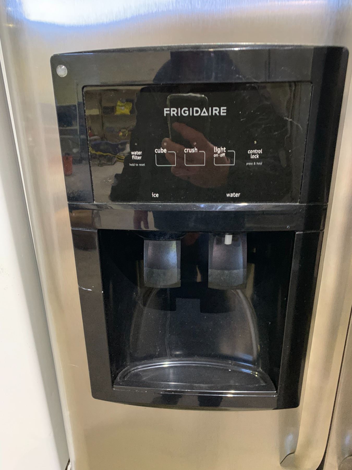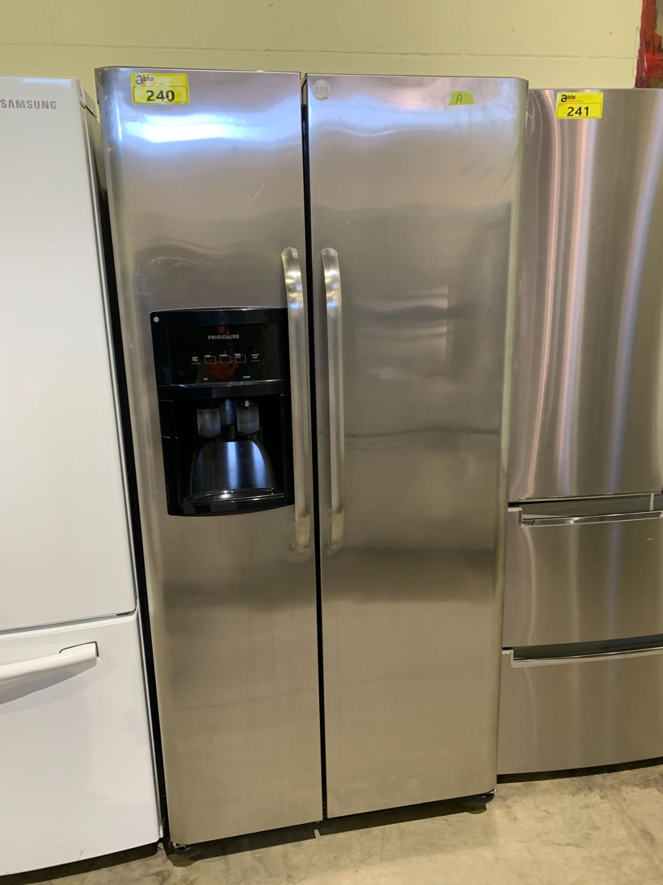 FRIGIDAIRE STAINLESS STEEL SIDE BY SIDE FRIDGE WITH ICE AND WATER