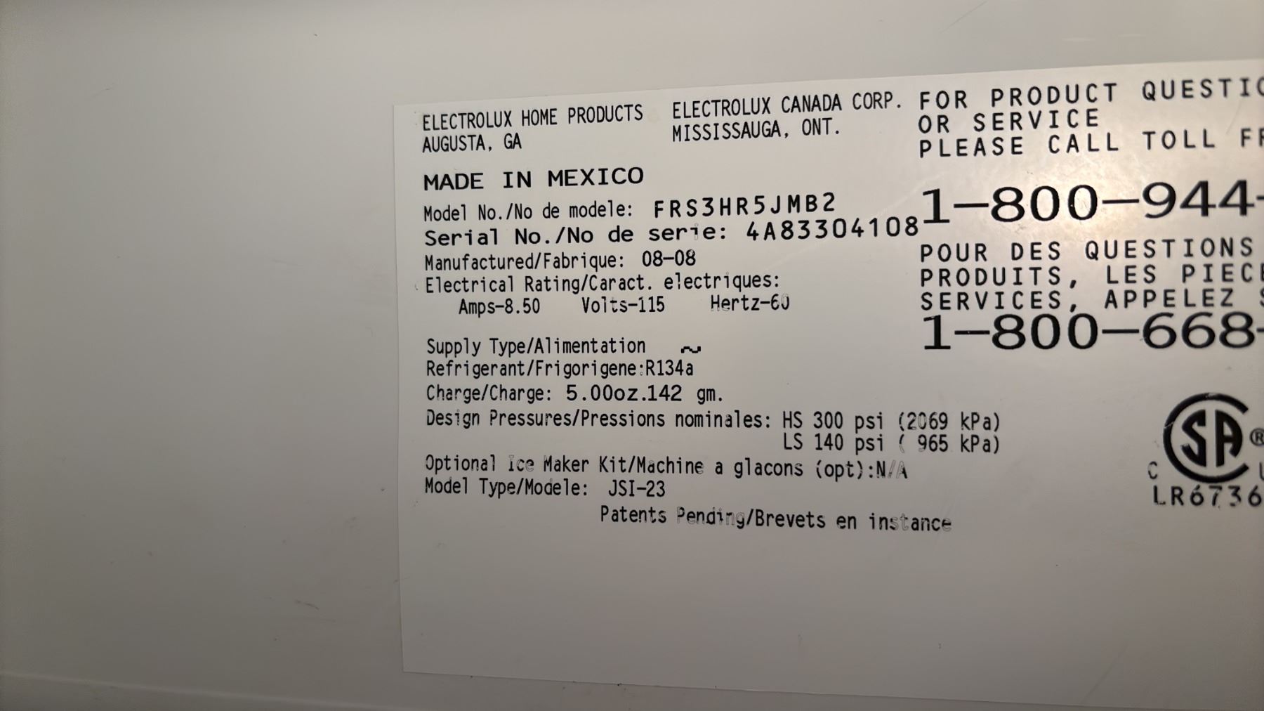 FRIGIDAIRE STAINLESS STEEL SIDE-BY-SIDE FRIDGE WITH WATER/ICE DISPENSER 33"W