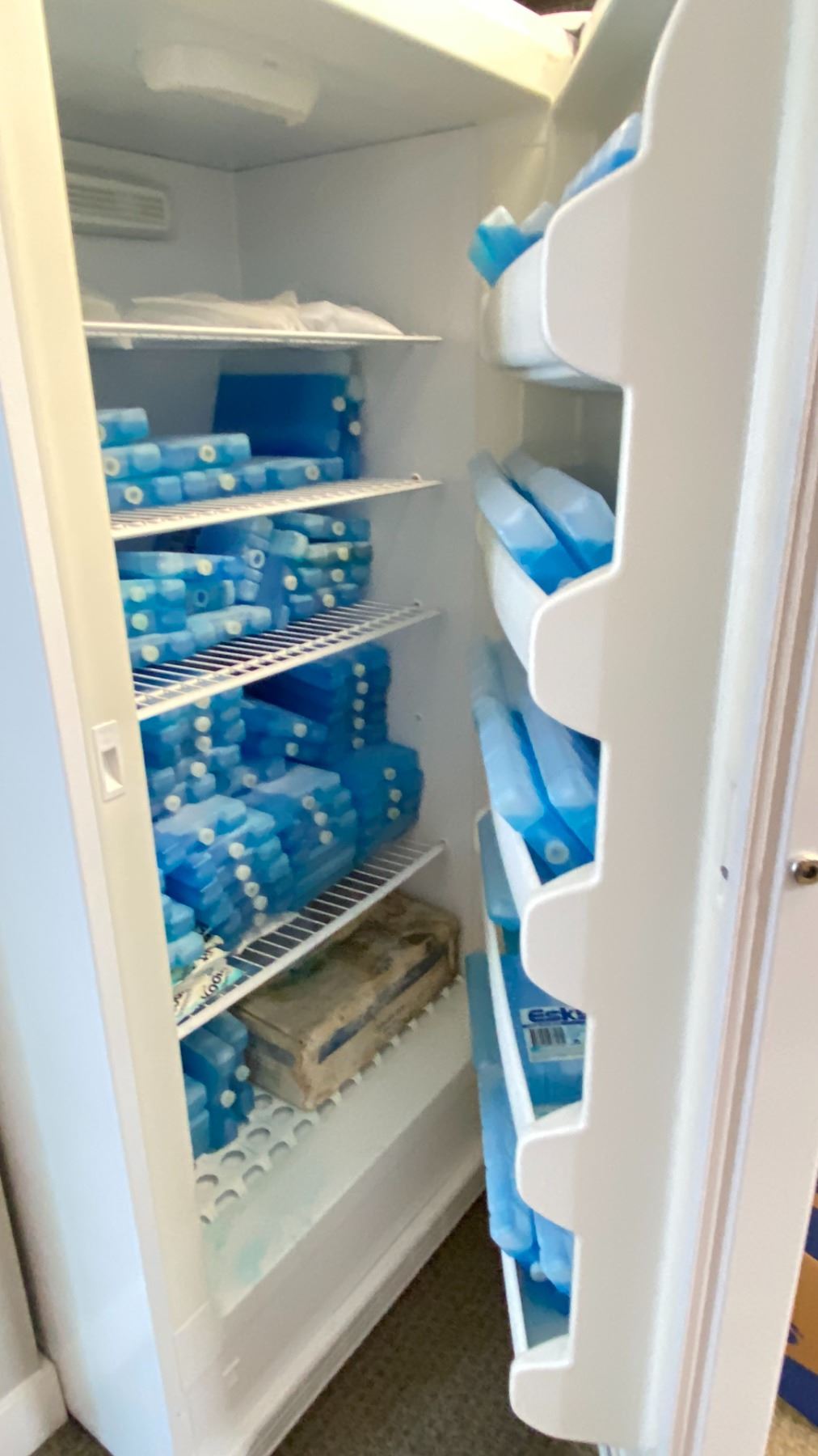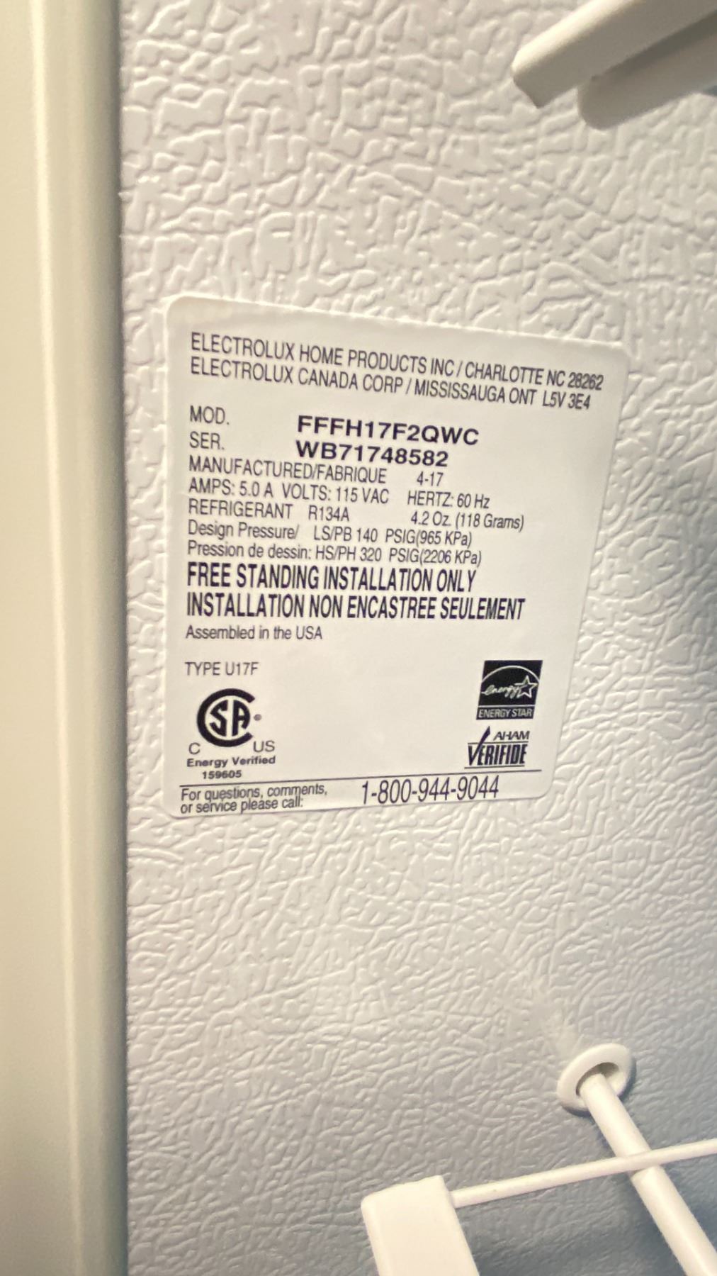 FRIGIDAIRE STANDING FREEZER WITH APPROX 75 FREEZER PACKS