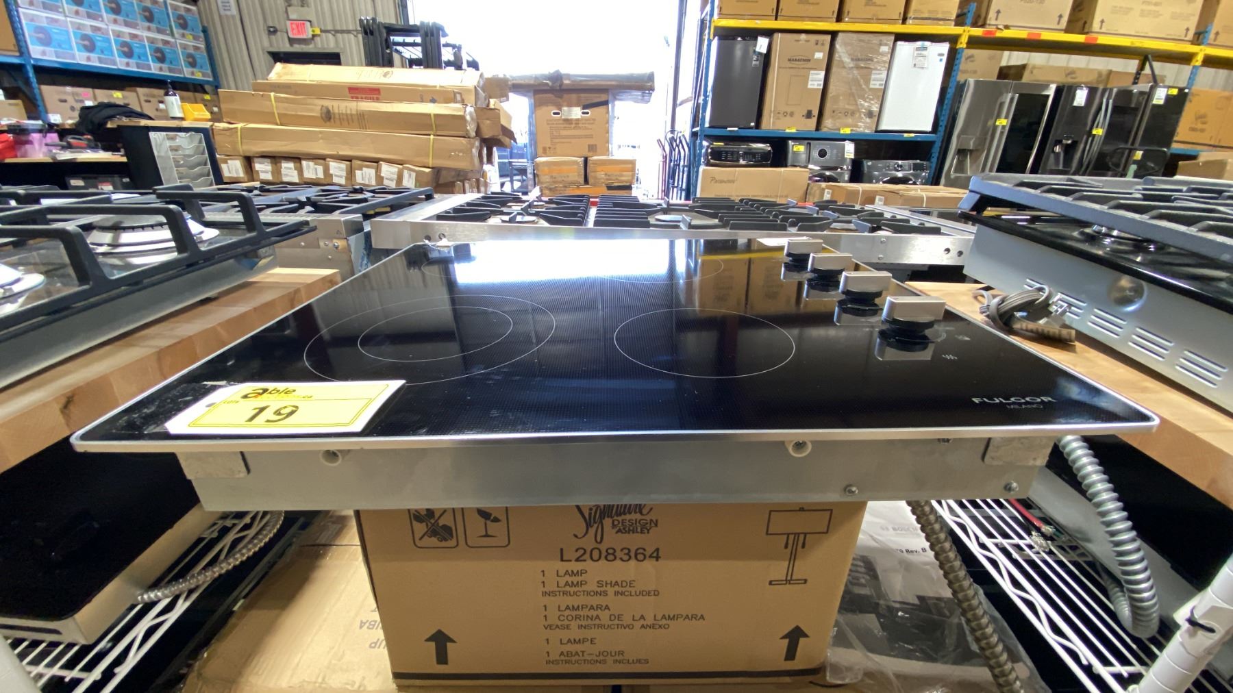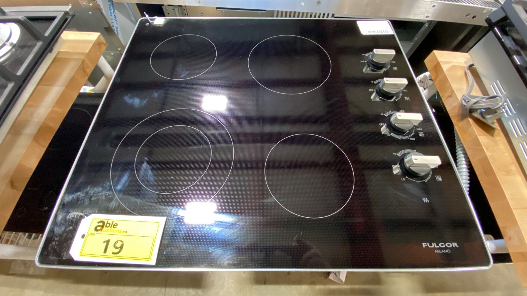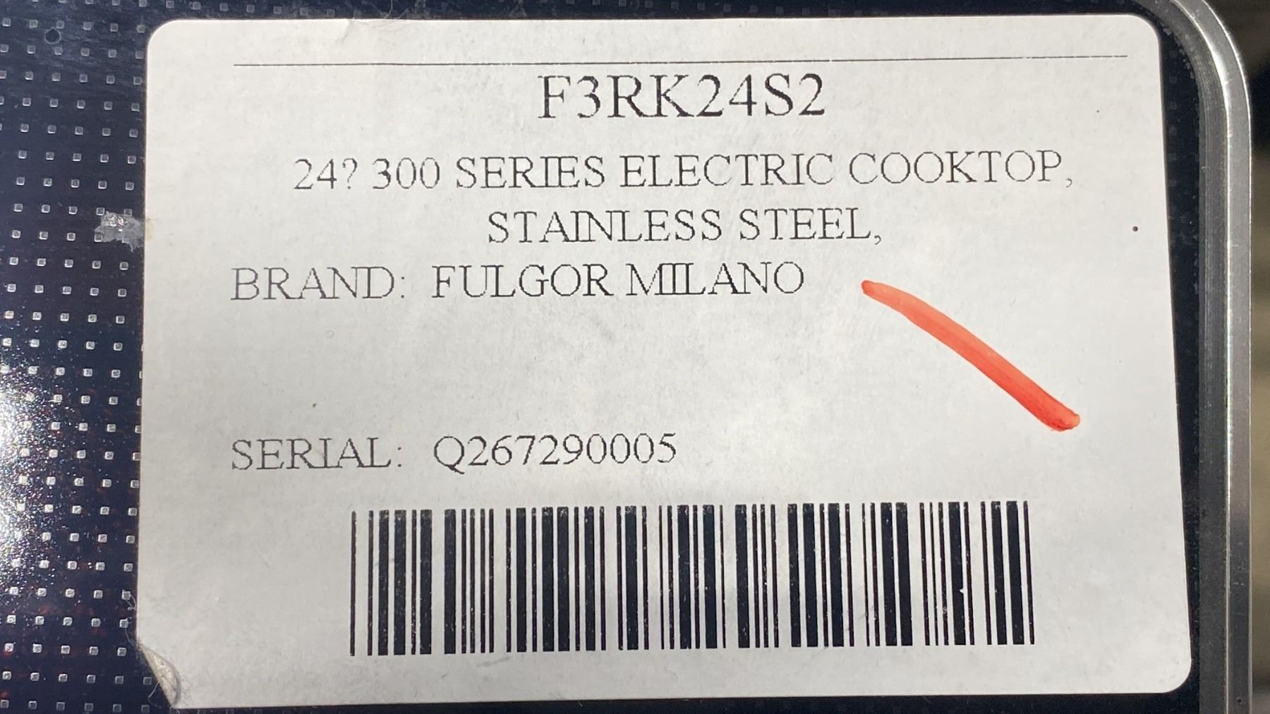 FULGOR MILANO MODEL F3RK24S2. 300 SERIES BLACK 24" 4 ZONE CERAMIC GLASS ELECTRIC COOKTOP SN Q267290005 RETAIL PRICE $1189.00
