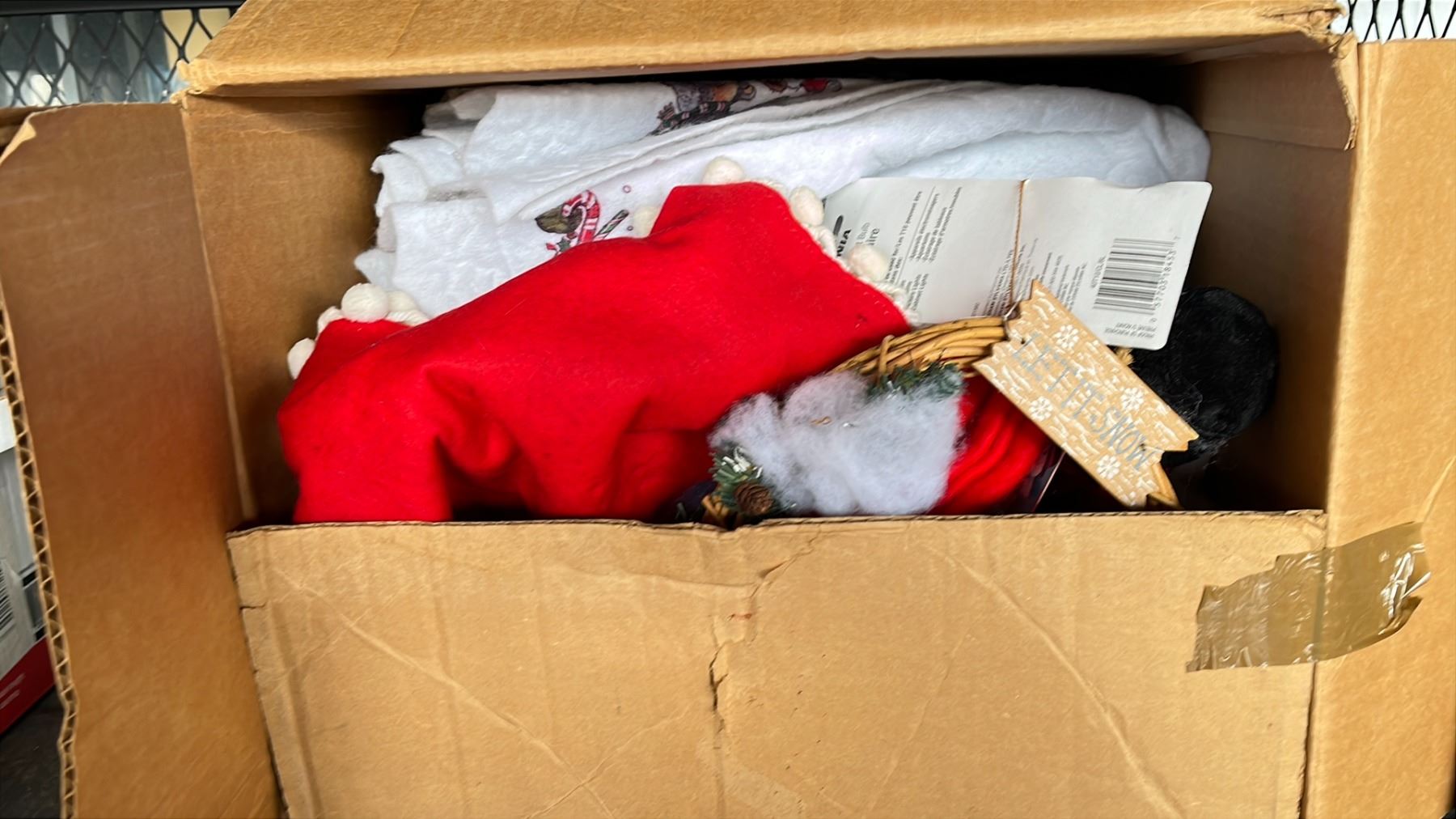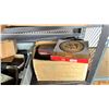 FULL RACK OF ASSORTED ITEMS INCLUDING AUTO PARTS, DYI ENCYCLOPEDIAS, CHRISTMAS DECORATIONS & MORE
