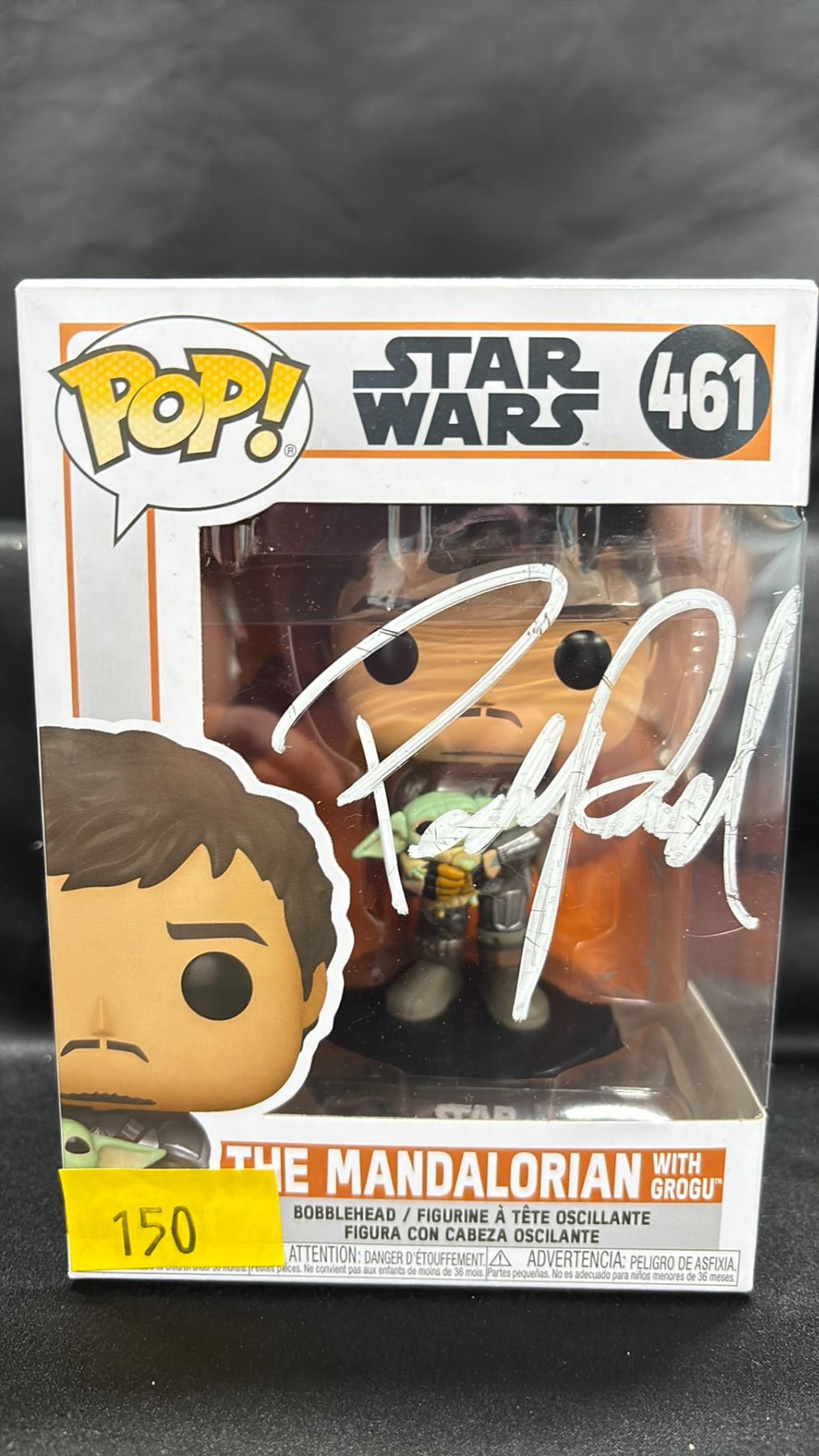 FUNKO POP! STAR WARS #461 THE MANDALORIAN WITH GROGU BOBBLE-HEAD AUTOGRAPHED BY PEDRO PASCAL WITH COA