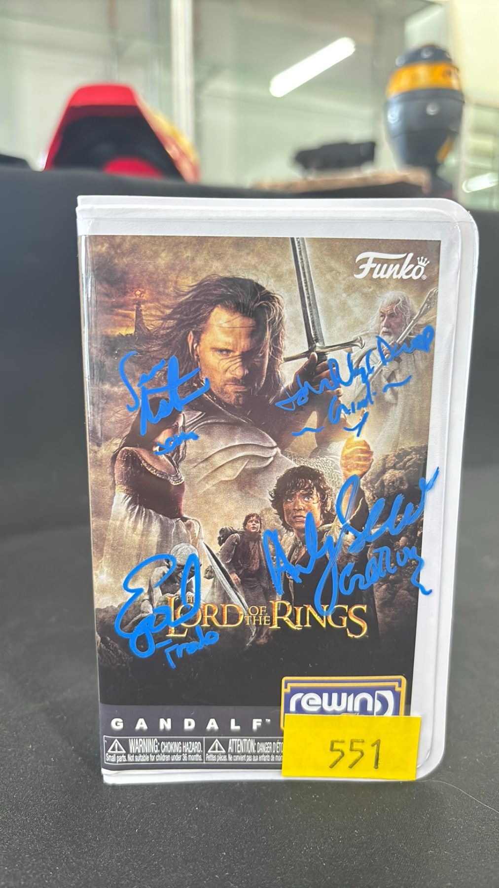 FUNKO REWIND GANDALF FIGURINE AUTOGRAPHED BY ELIJAH WOOD, ANDY SERKIS, JOHN RHYS DAVIES & SEAN