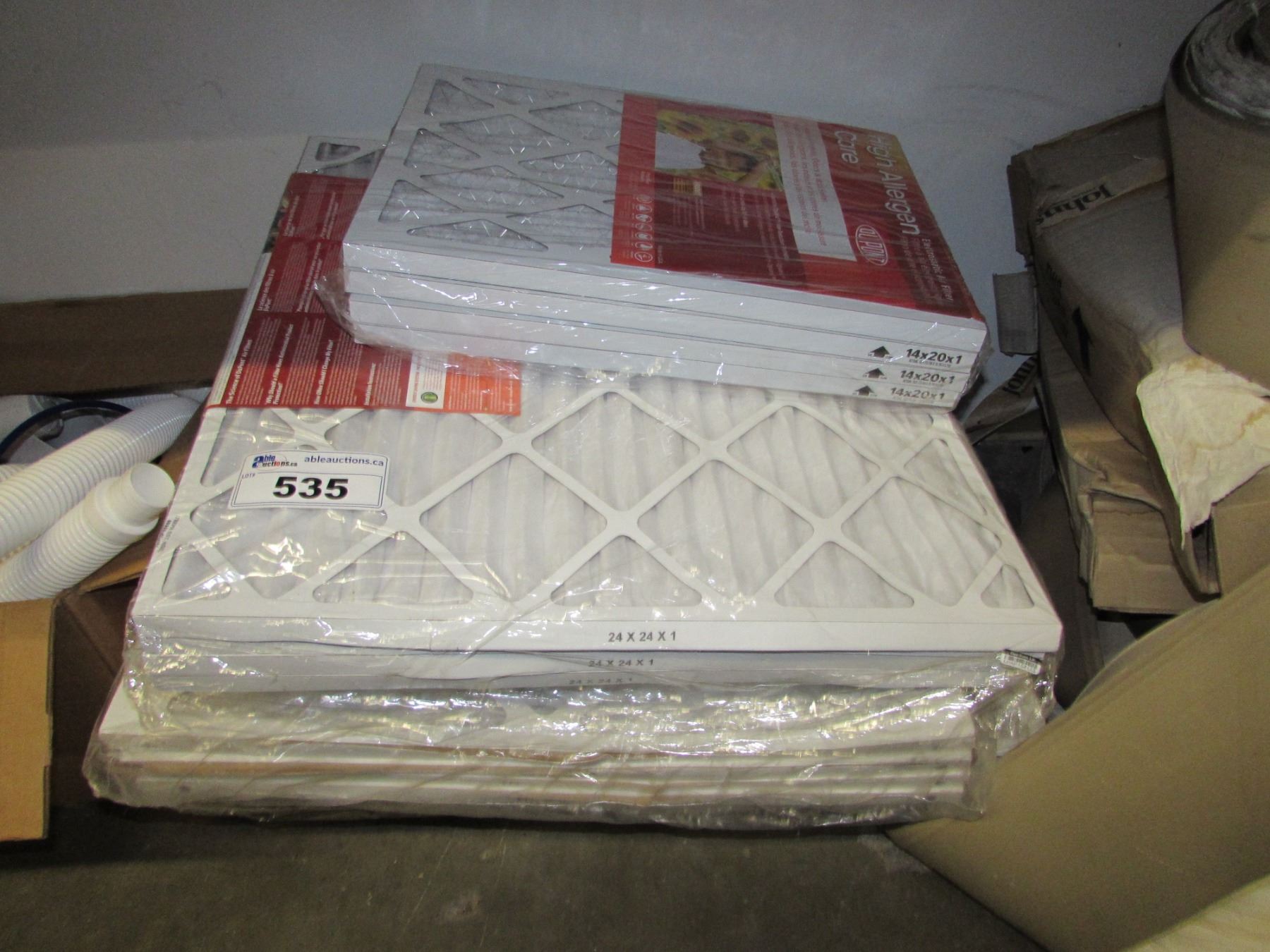 FURNACE FILTERS, ROLLS OF VINYL TRIM, VACUUM HOSES, MISC