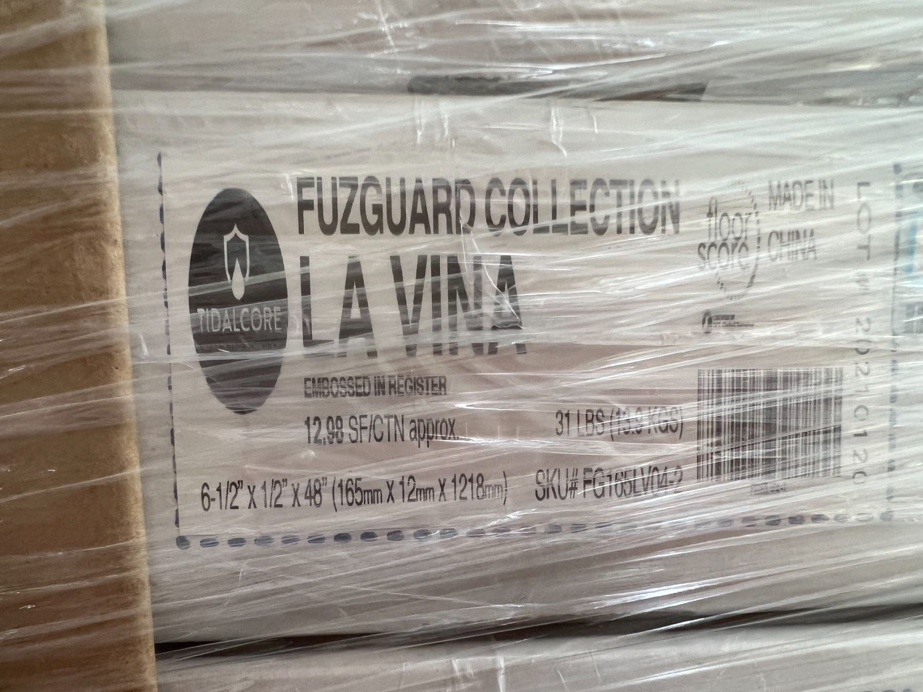 FUZGUARD COLLECTION - "LA VINA" HIGH QUALITY LAMINATE FLOORING - CLICK TOGETHER 100% WATER PROOF SURFACE - 6-1/2" X 1/2" X 48" - 12.98 SQ FT PER BOX, 65 BOXES TOTAL COVERAGE 843.7 SQ FT - TOTAL PALLET WEIGHT 2065LBS