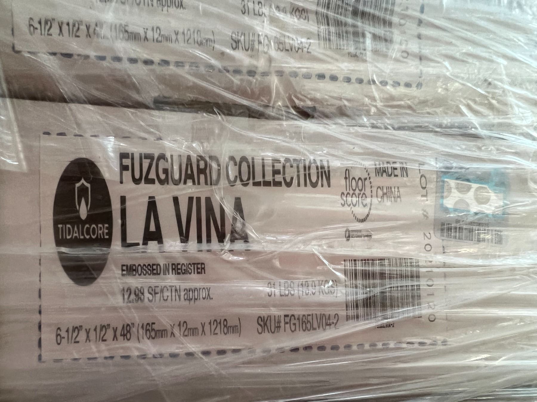 FUZGUARD COLLECTION - "LA VINA" HIGH QUALITY LAMINATE FLOORING - CLICK TOGETHER 100% WATER PROOF SURFACE - 6-1/2" X 1/2" X 48" - 12.98 SQ FT PER BOX, 60 BOXES TOTAL COVERAGE 778.8 SQ FT - TOTAL PALLET WEIGHT 1860LBS