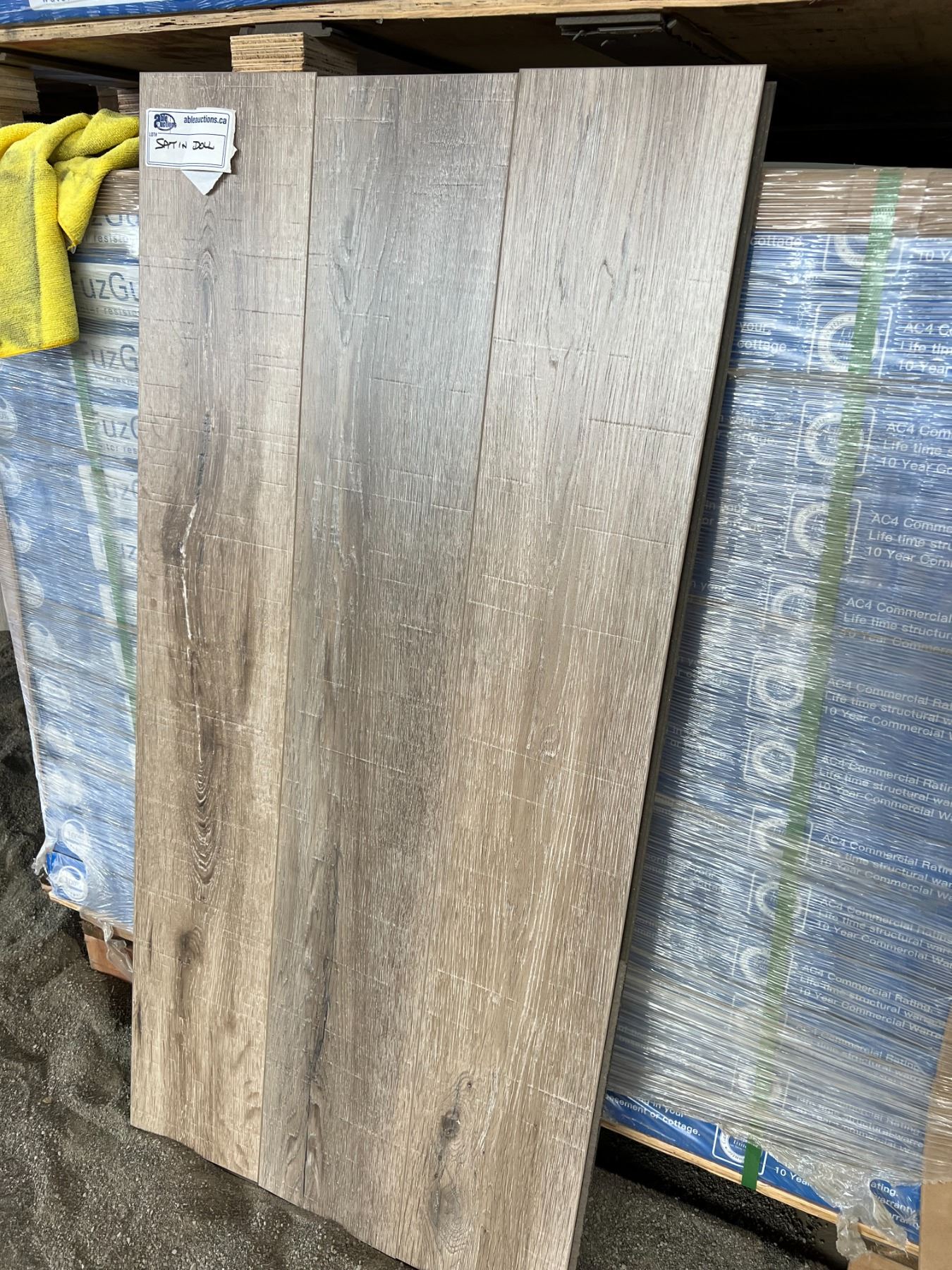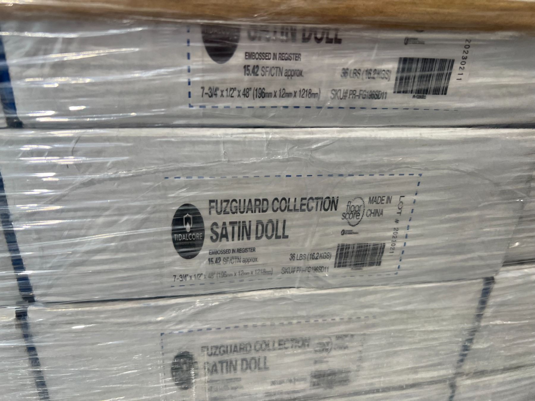 FUZGUARD COLLECTION - "SATIN DOLL" HIGH QUALITY LAMINATE FLOORING - CLICK TOGETHER 100% WATER PROOF SURFACE - 6-1/2" X 1/2" X 48" - 12.98 SQ FT PER BOX, 65 BOXES, TOTAL COVERAGE 882. SQ FT - TOTAL PALLET WEIGHT 2065LBS RETAIL $4136.58