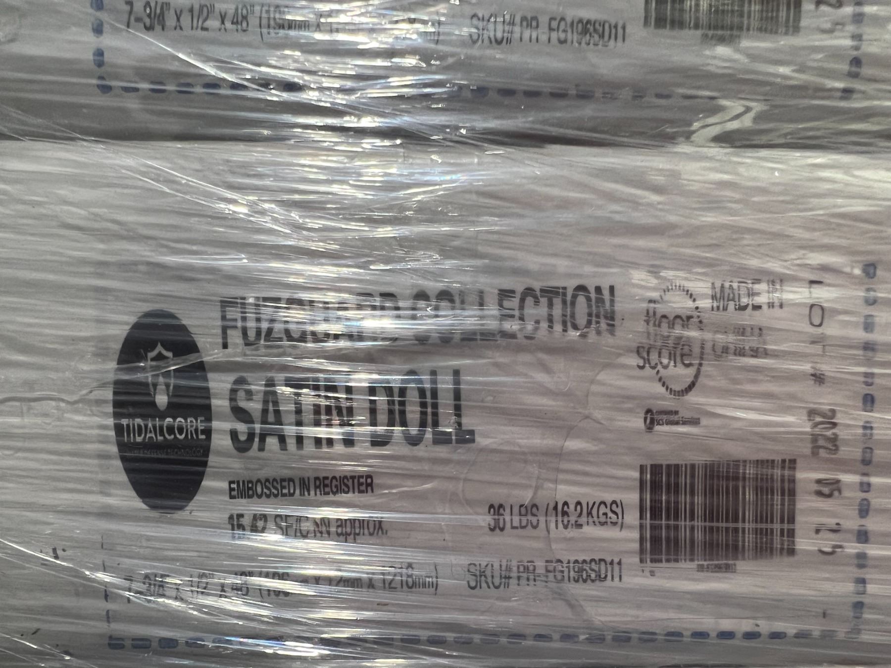FUZGUARD COLLECTION - "SATIN DOLL" HIGH QUALITY LAMINATE FLOORING - CLICK TOGETHER 100% WATER PROOF SURFACE - 6-1/2" X 1/2" X 48" - 12.98 SQ FT PER BOX, 65 BOXES, TOTAL COVERAGE 882. SQ FT - TOTAL PALLET WEIGHT 2065LBS
