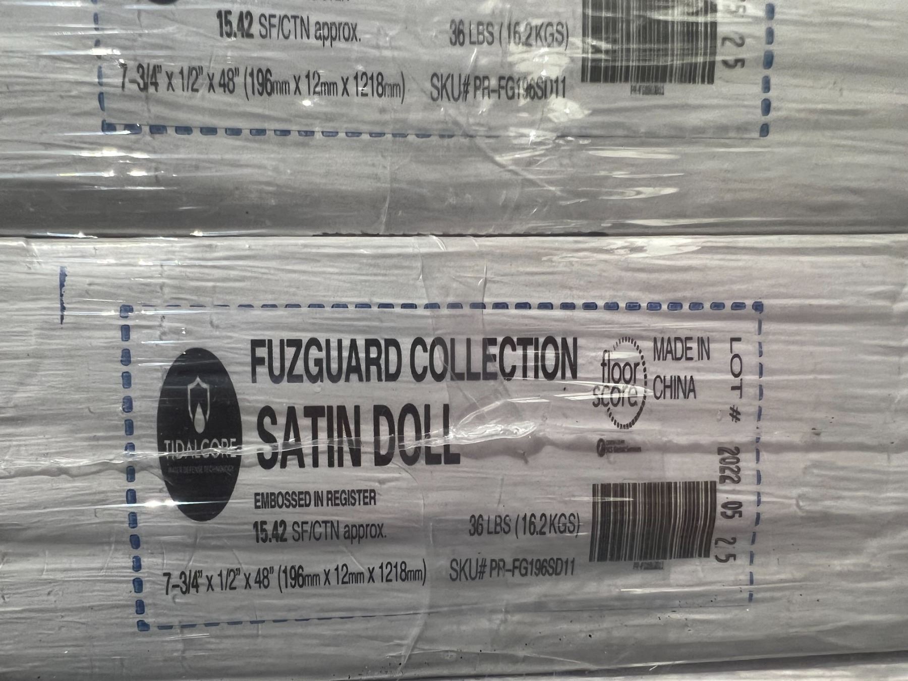 FUZGUARD COLLECTION - "SATIN DOLL" HIGH QUALITY LAMINATE FLOORING - CLICK TOGETHER 100% WATER PROOF SURFACE - 6-1/2" X 1/2" X 48" - 12.98 SQ FT PER BOX, 65 BOXES, TOTAL COVERAGE 882. SQ FT - TOTAL PALLET WEIGHT 2065LBS