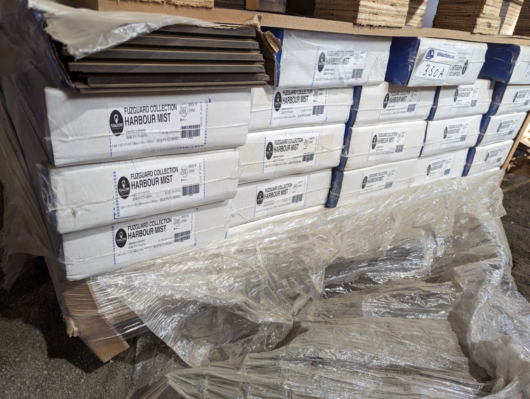 FUZGUARD "HARBOUR MIST" 7-3/4" X 1/2" X 71-1/4" 22.92 SQ FT X 24 BOXES TOTAL COVERAGE APPROX 550 SQ FT - TOTAL WEIGHT 1296 LBS - 100% WATERPROOF LAMINATE FLOORING