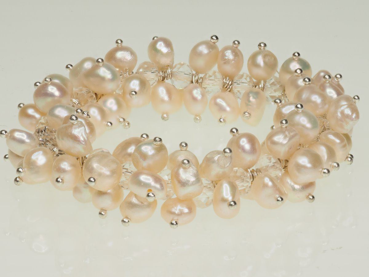 FW PEARL FLEXIBLE SIZE BRACELET WITH CRYSTALS