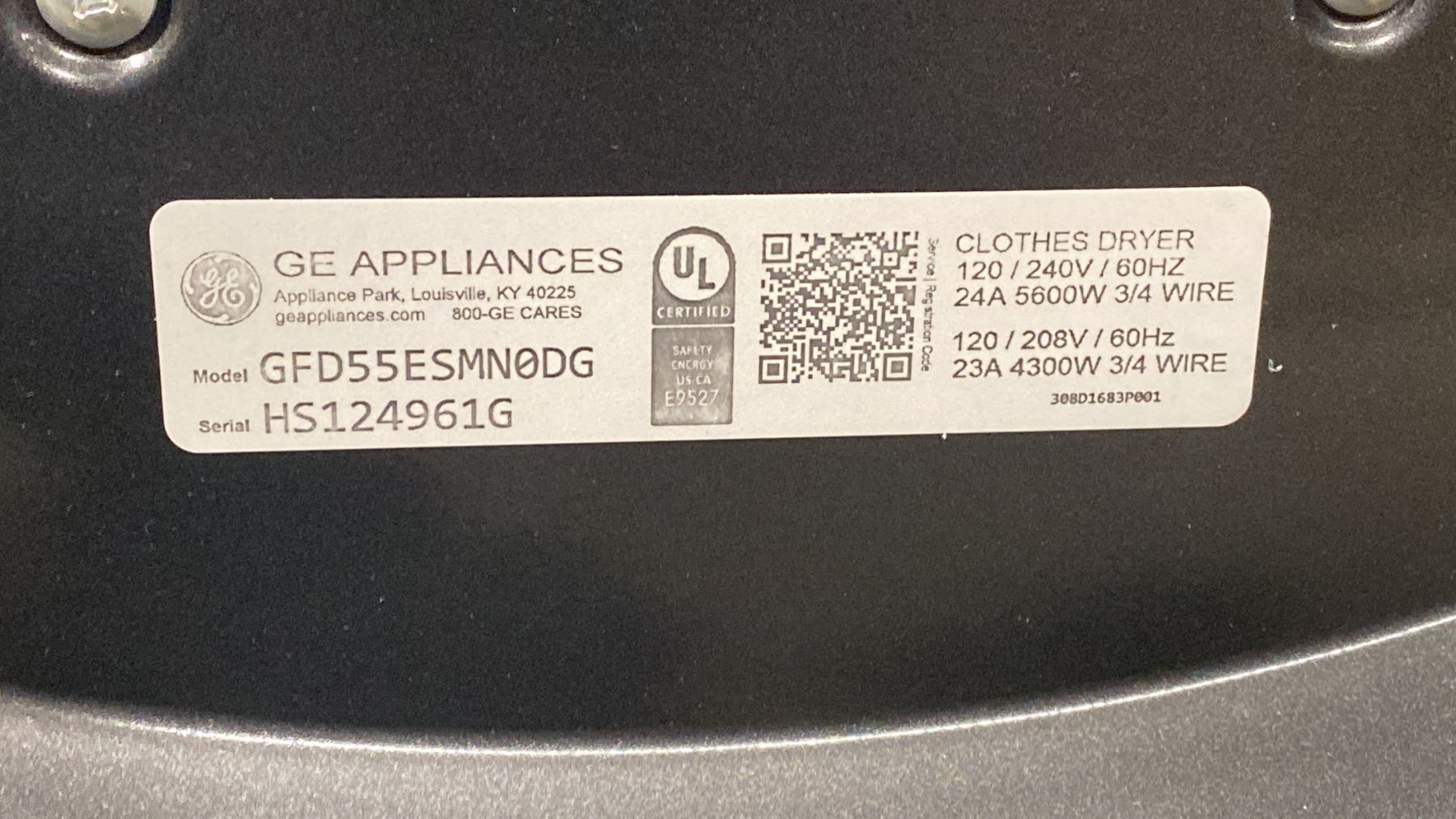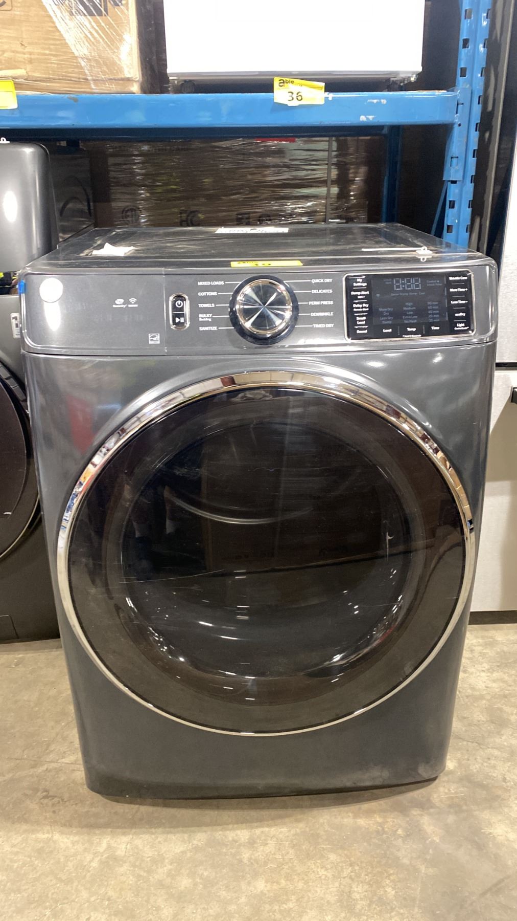G.E APPLIANCES MODEL GFD55ESMNDG. 7.8 CU. FT. DIAMOND GRAY VENTED ELECTRIC SMART DRYER SN SHHS124961G RETAIL PRICE $1549.00