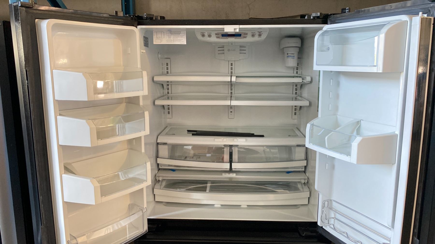 G.E PFICINFZBV BLACK FRENCH DOOR REFRIGERATOR WITH FREEZER DRAWER APPROX 36"W X 69.5"H X 27"D PANEL READY, 21 CU FT