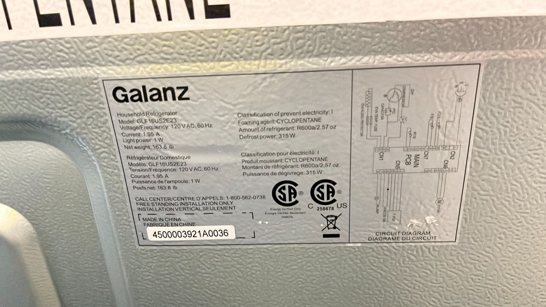 GALANZ STAINLESS STEEL STANDING FRIDGE OR FREEZER (HANDLE DETACHED)