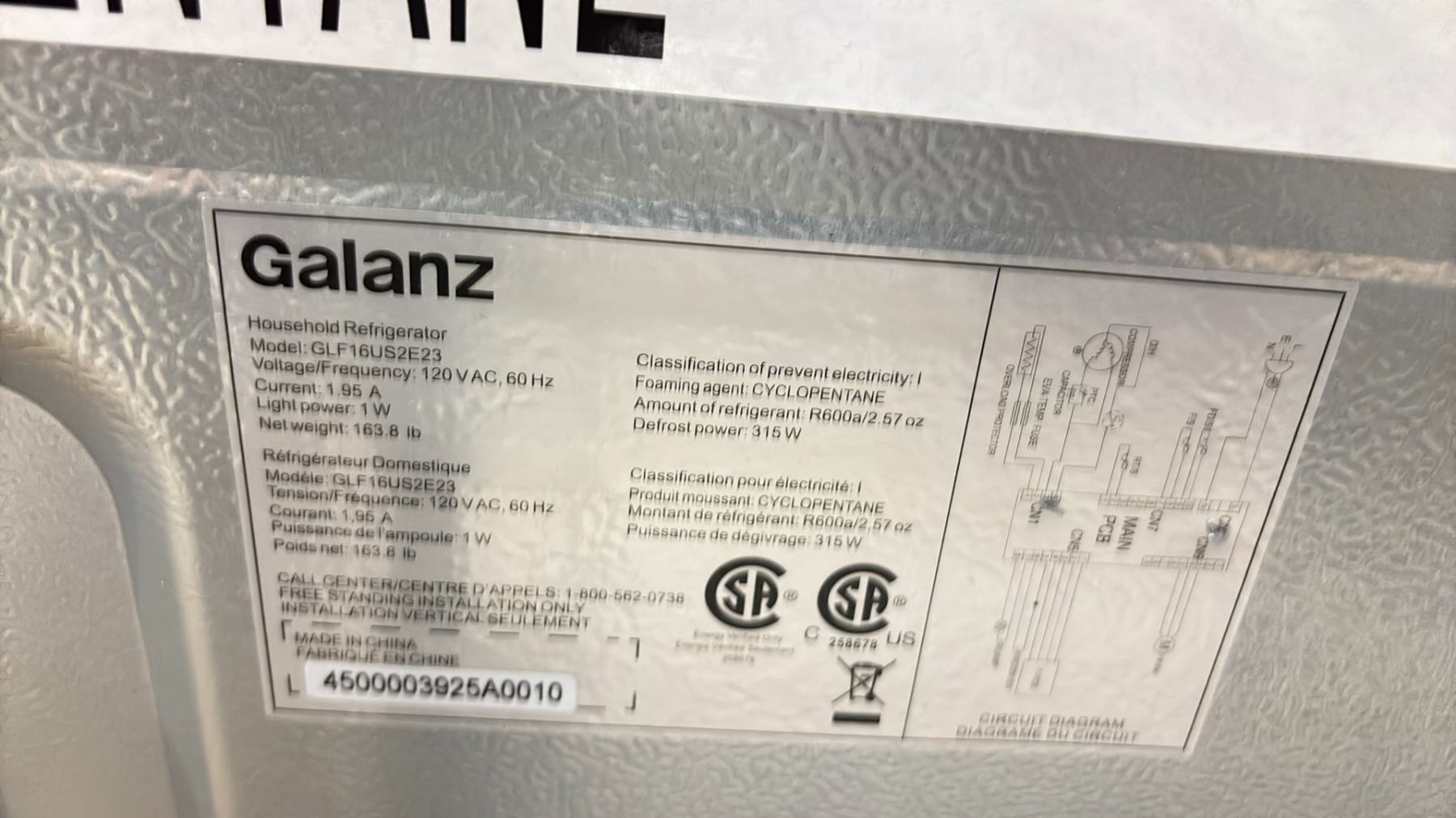 GALANZ STAINLESS STEEL STANDING FRIDGE OR FREEZER (HANDLE DETACHED)