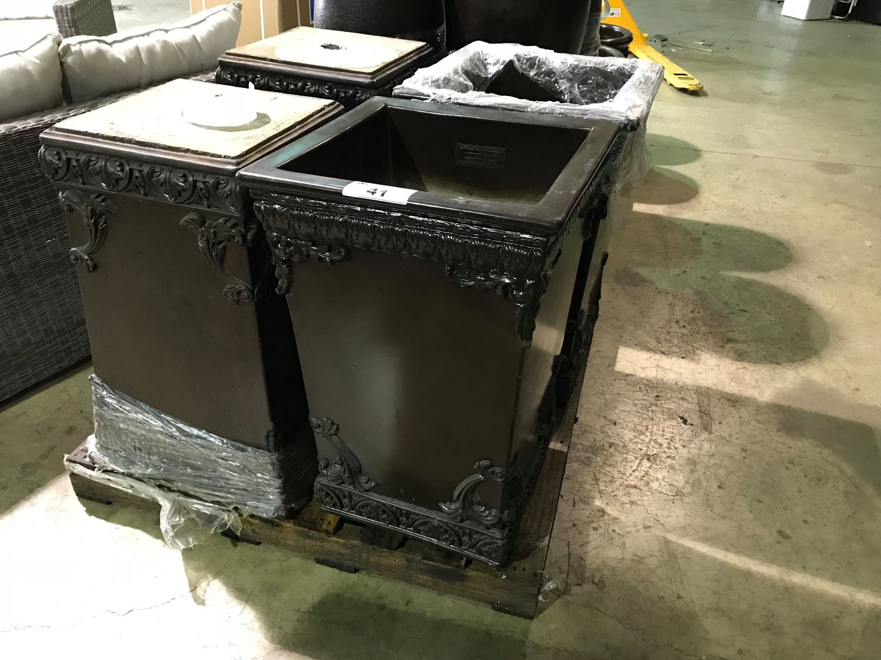 GARDENSTONE MOCHA BROWN WITH FANCY TRIM 30" TALL INDOOR / OUTDOOR SQUARE TOP PLANTER