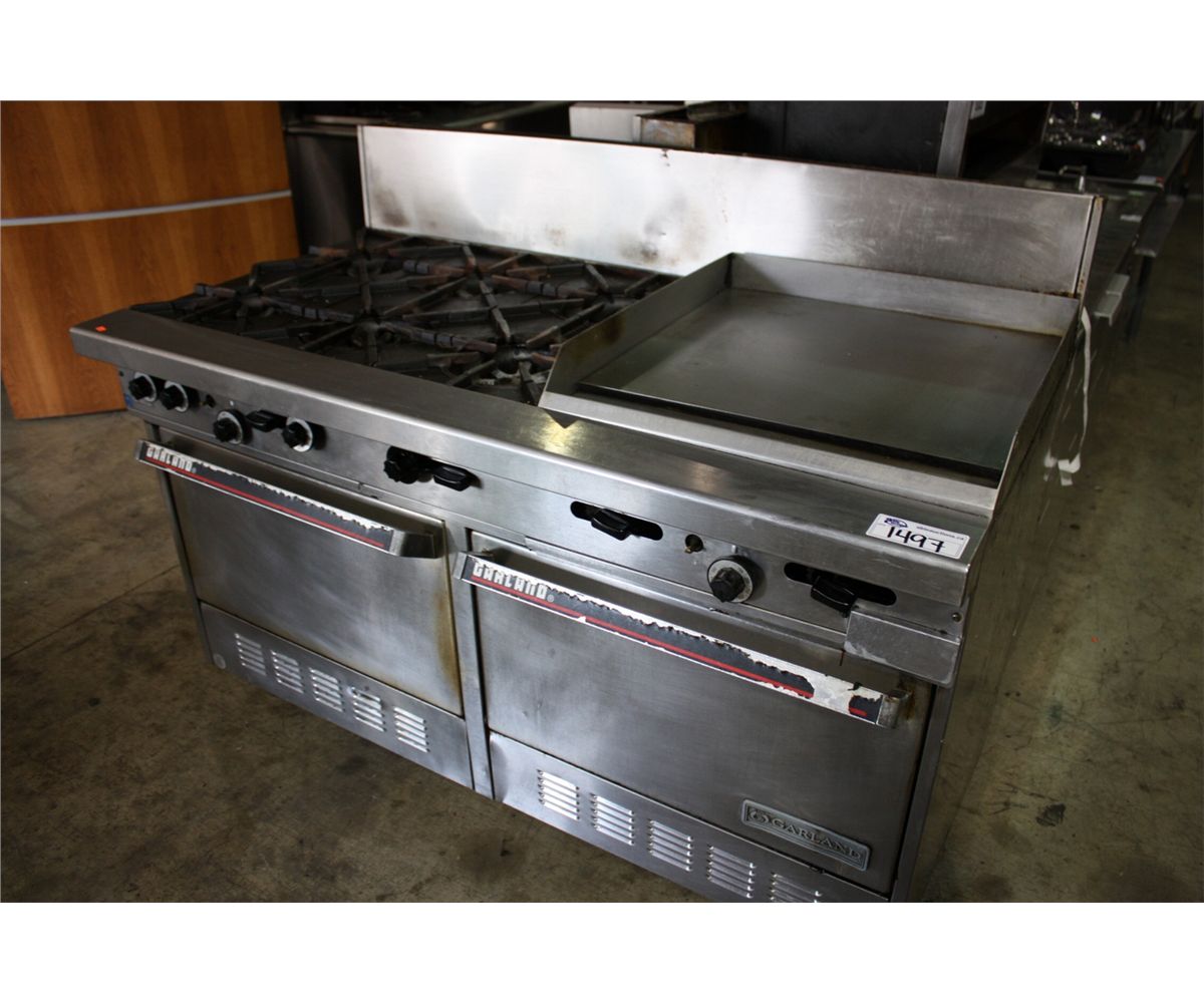 GARLAND STAINLESS STEEL 6 BURNER GAS STOVE WITH 24" GRIDDLE AND DOUBLE OVEN