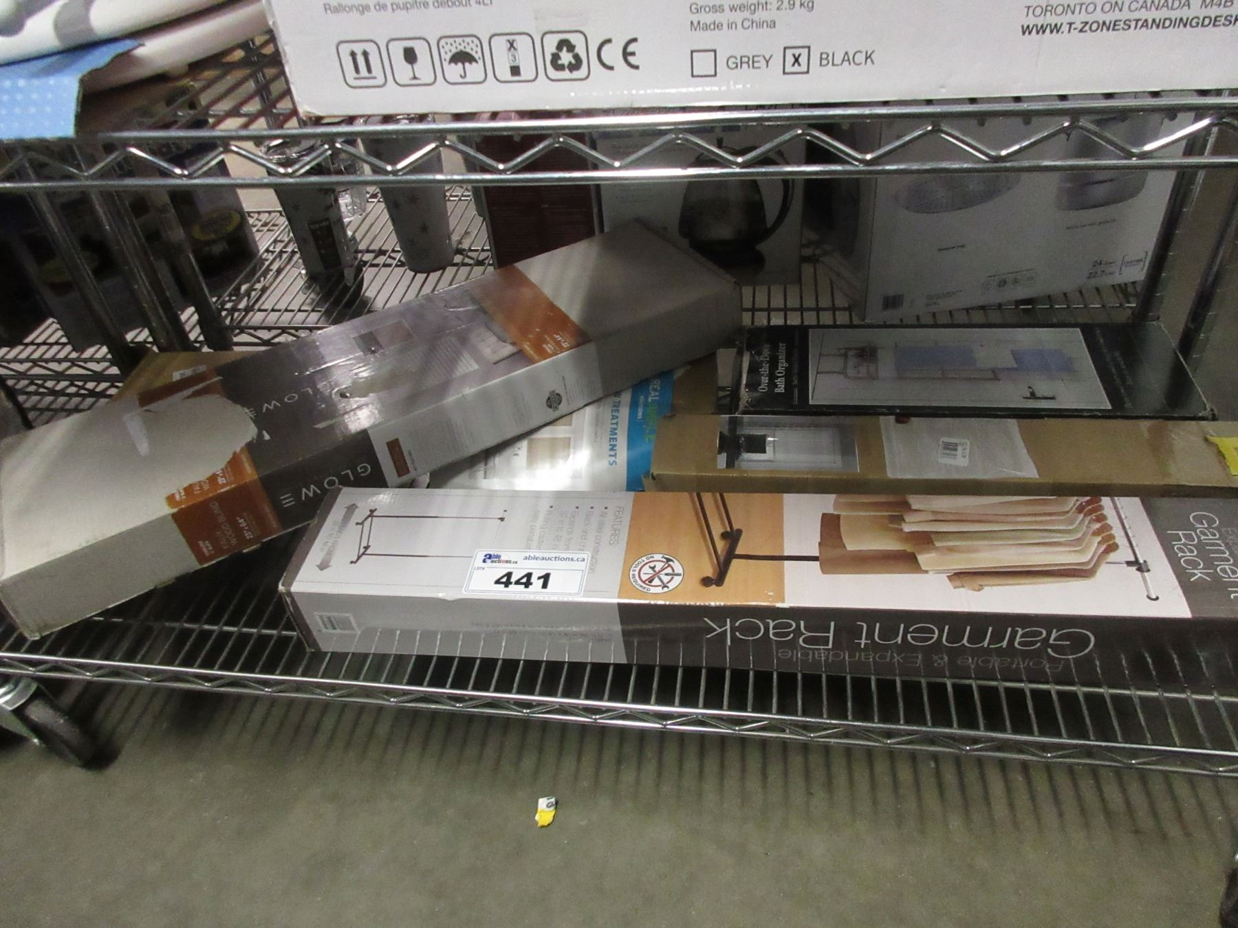 GARMENT RACK, BLINDS, BATH ORGANIZER, FAUX WOOD BLINDS, SHADES