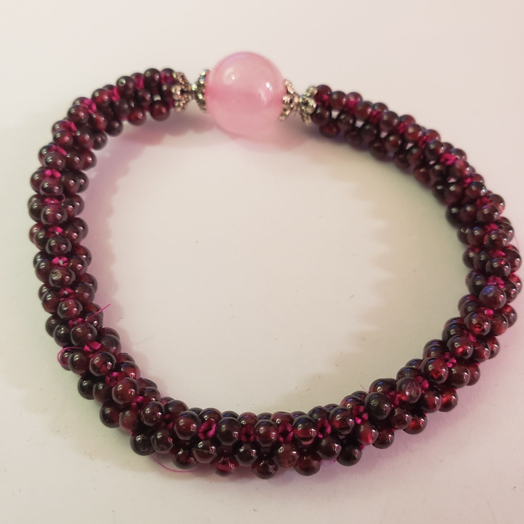GARNET ROSE QUARTZ FLEXIBLE BRACELET